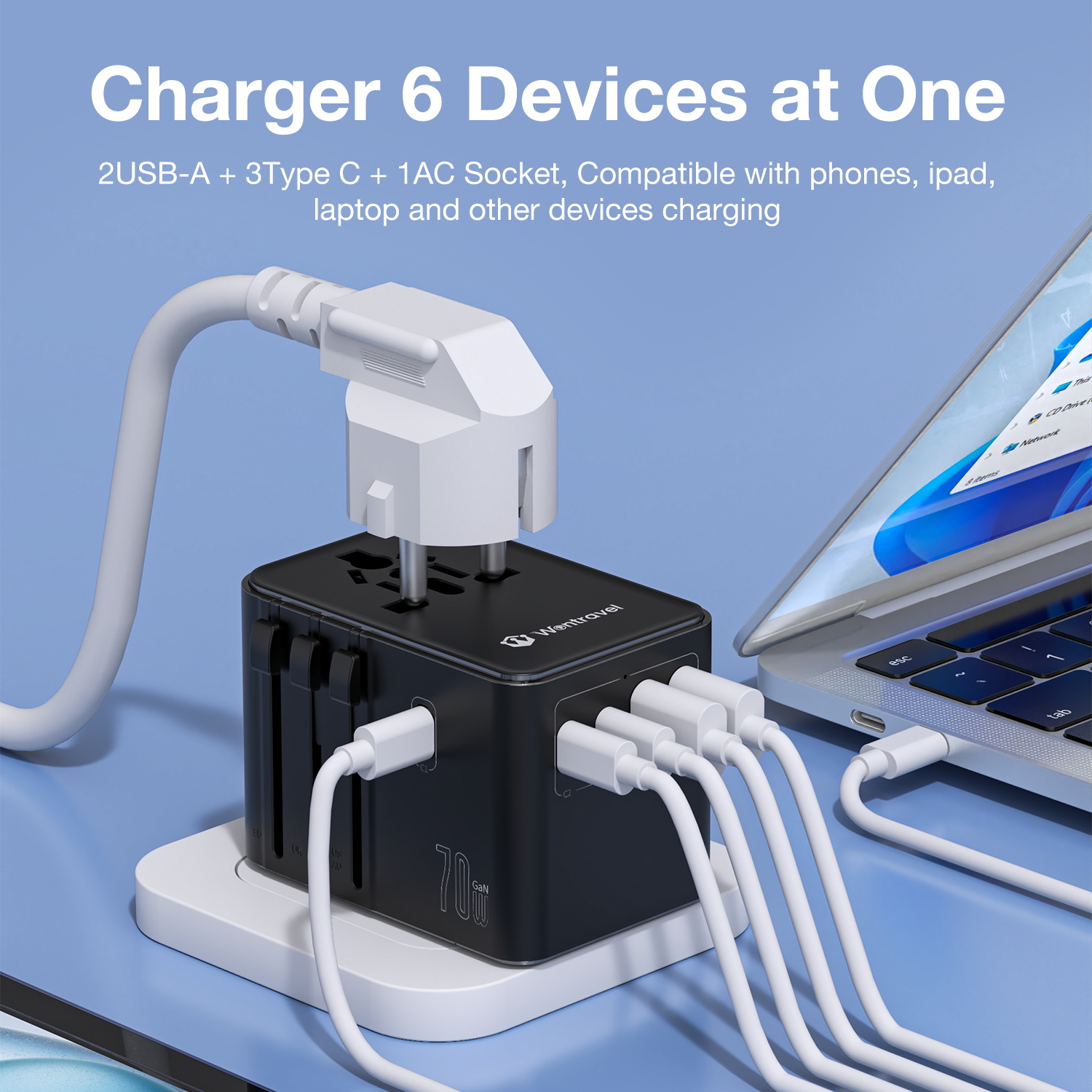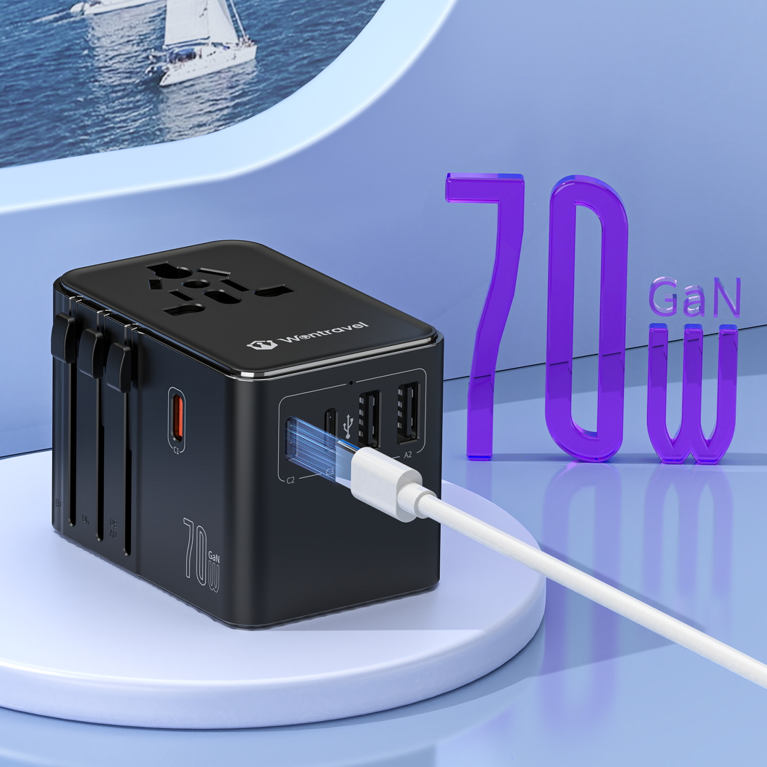 Wontravel 2500W Mobile Accessories 70W GAN World International Universal Travel Power Adapter