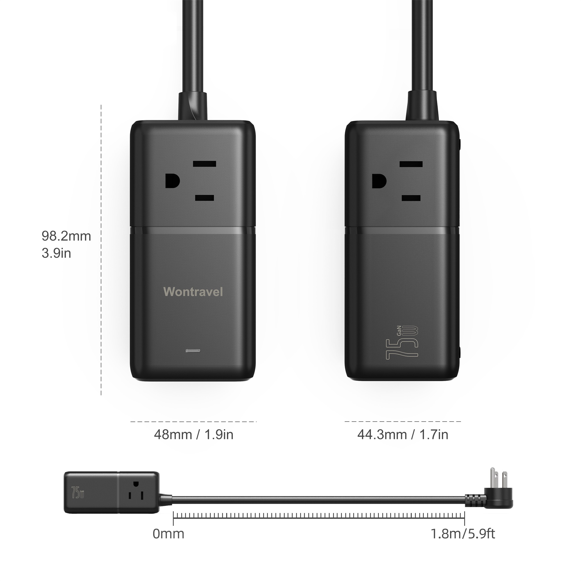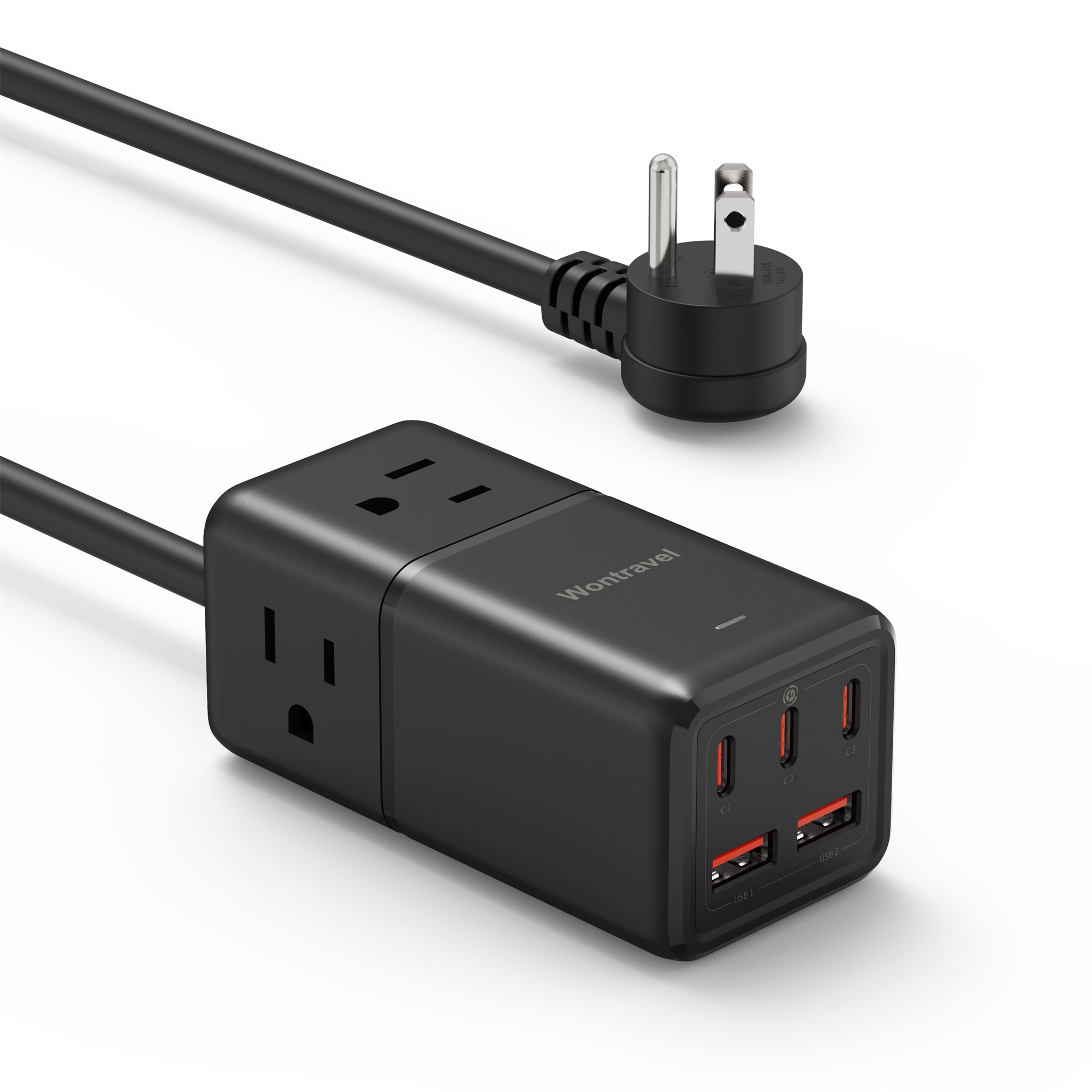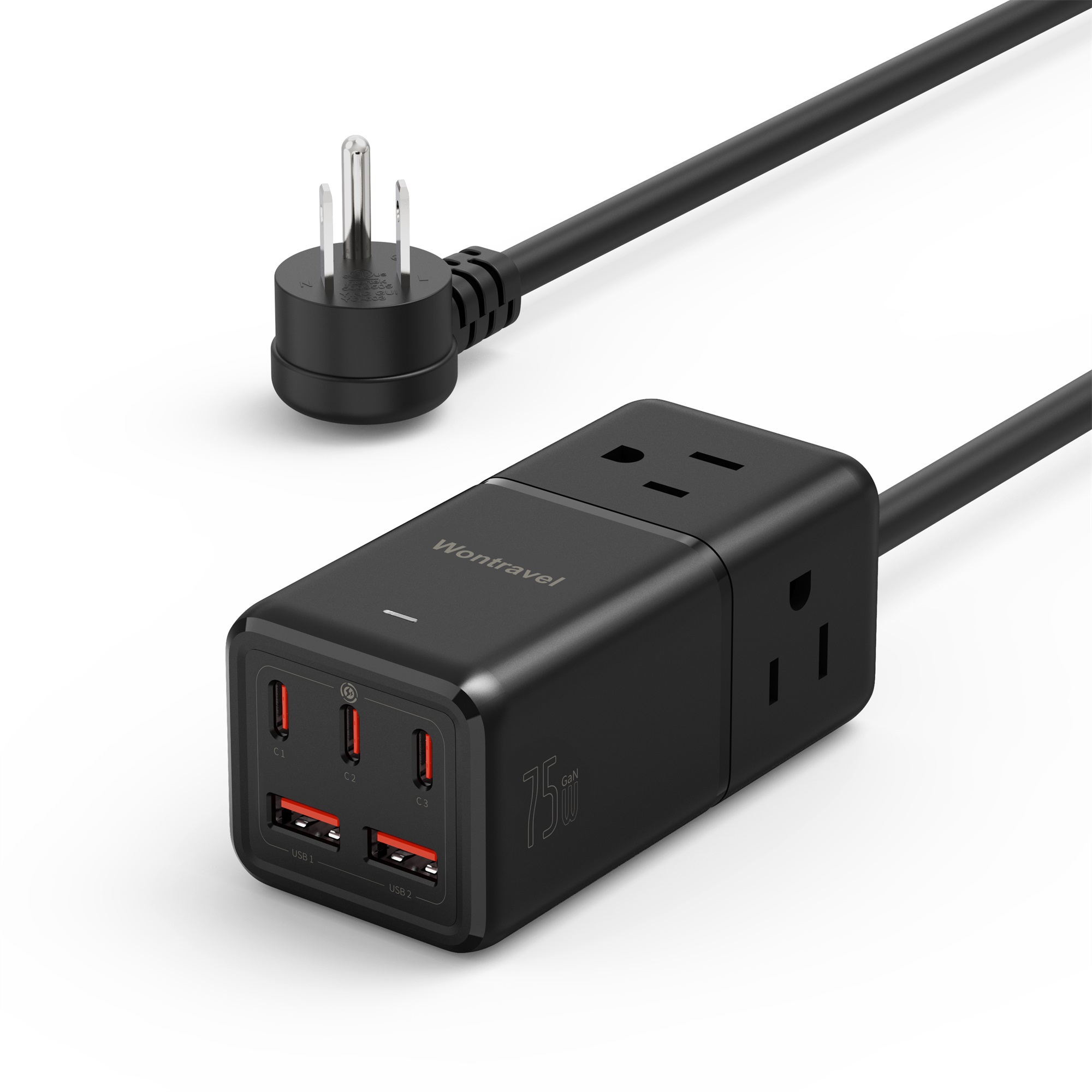 Wontravel US Type Electric Extension Lead Power Electrical Power 3 Type C 75W PD Surge Protector Power Strip with Usb Ports
