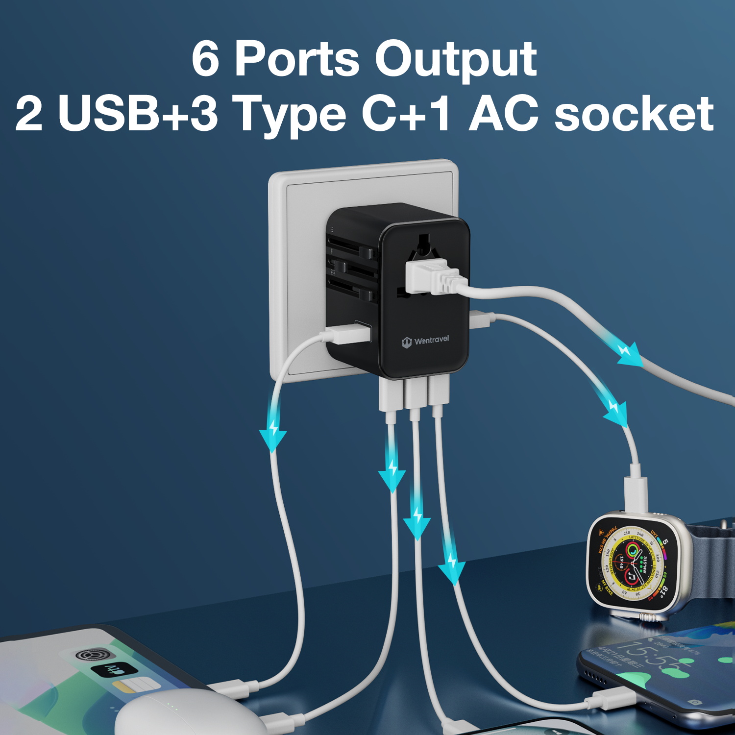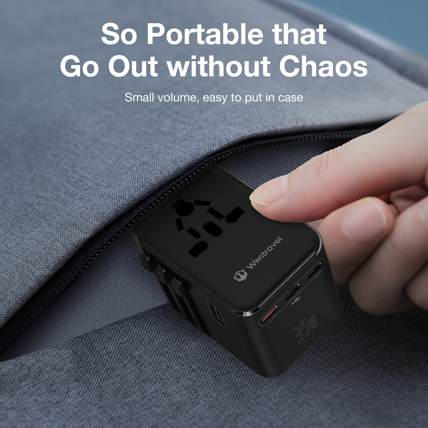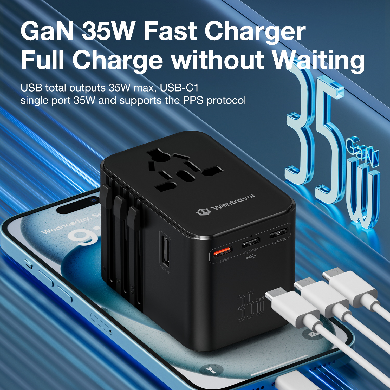 Wontravel Worldwide 3 Type-C 2 USB PD 35W Wall Power Travel Adaptor Multi Plug International Universal Travel Adapter