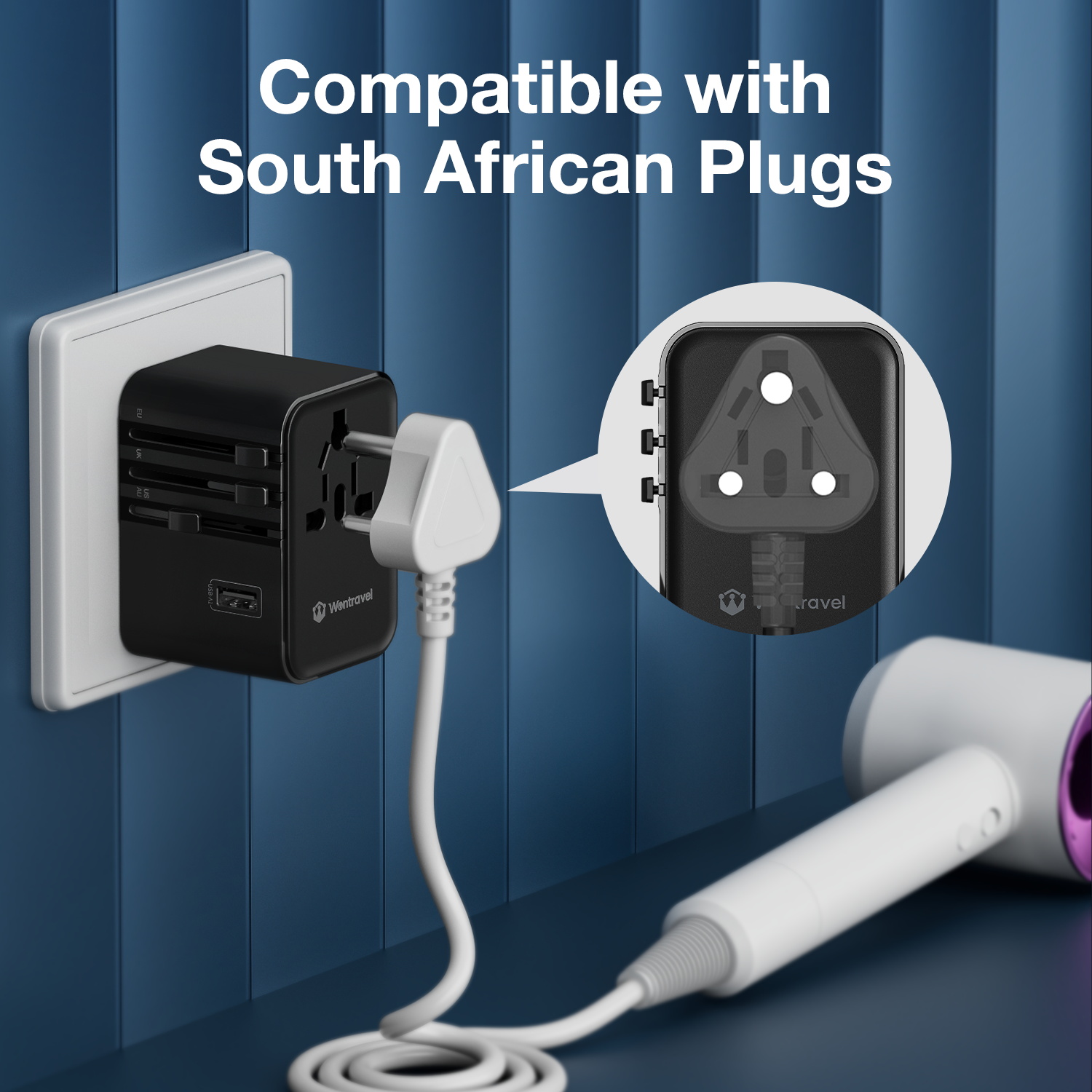 Wontravel 25W Fast Charging Travel Adapter Multi-Plug Universal All-in-One with 2 USB Output Ports Universal Adaptor for USB C