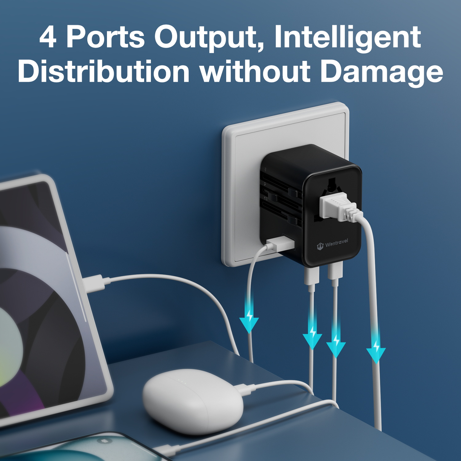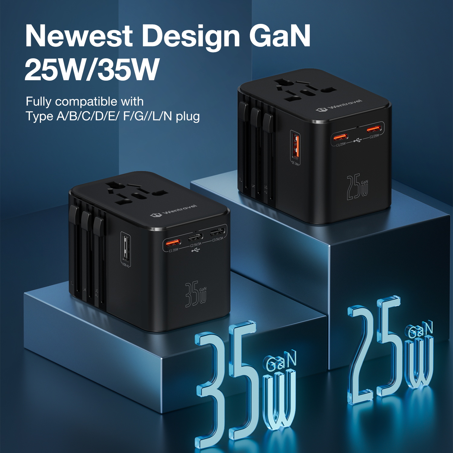 Wontravel Worldwide 3 Type-C 2 USB PD 35W Wall Power Travel Adaptor Multi Plug International Universal Travel Adapter