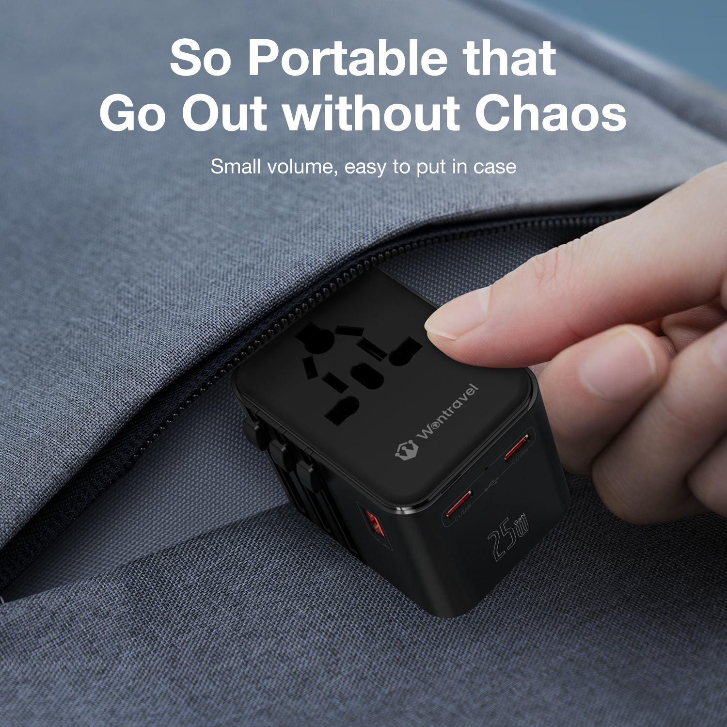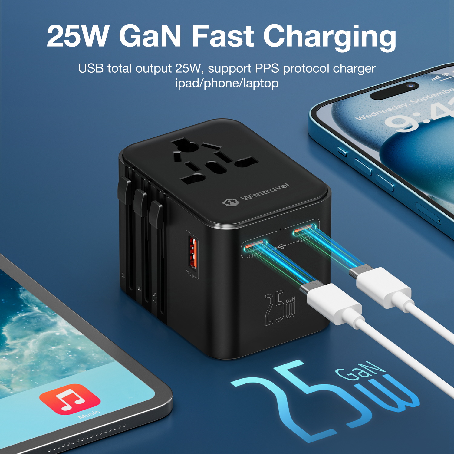 Wontravel 25W Fast Charging Travel Adapter Multi-Plug Universal All-in-One with 2 USB Output Ports Universal Adaptor for USB C
