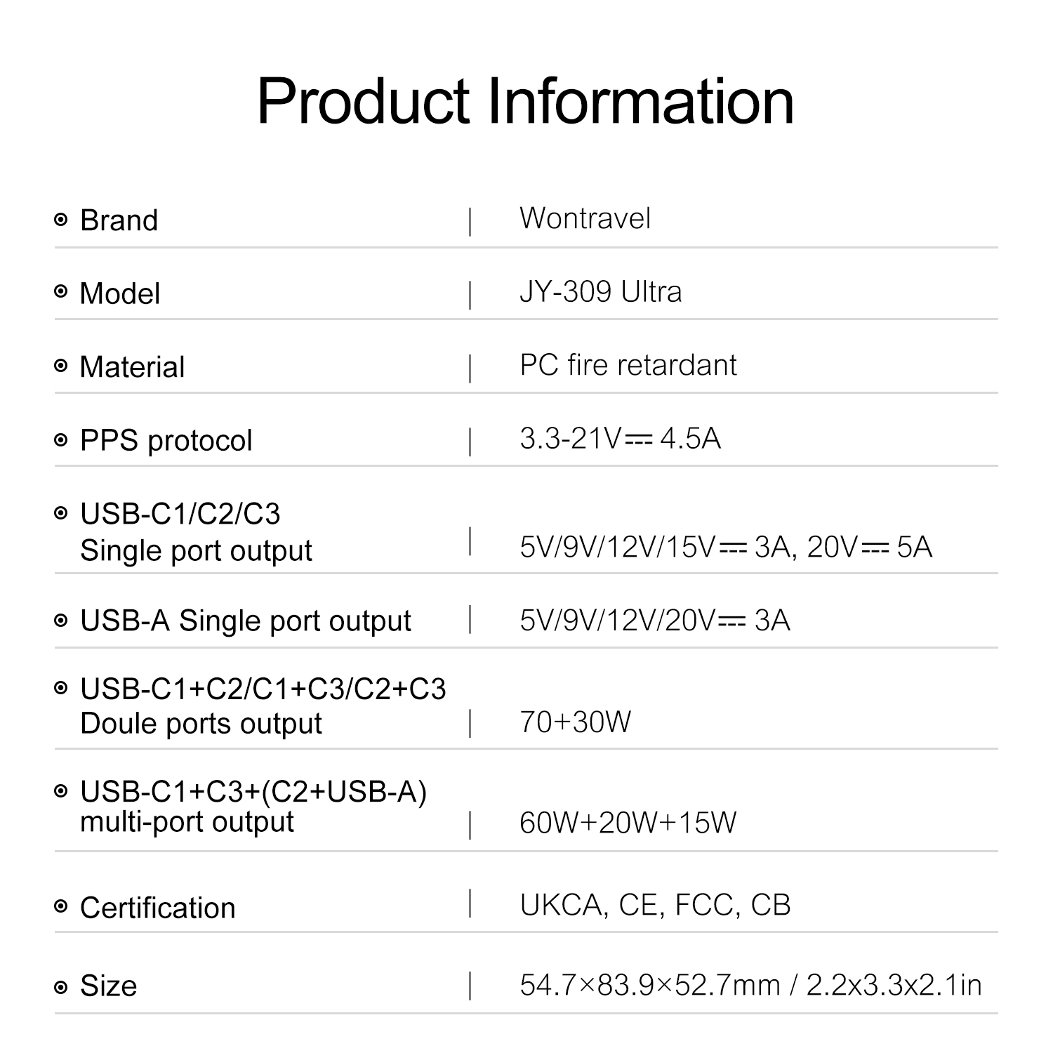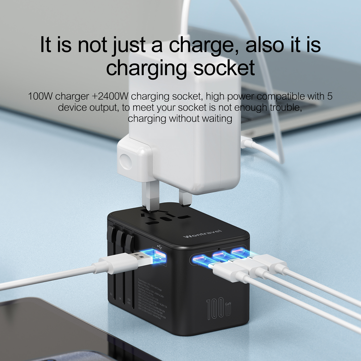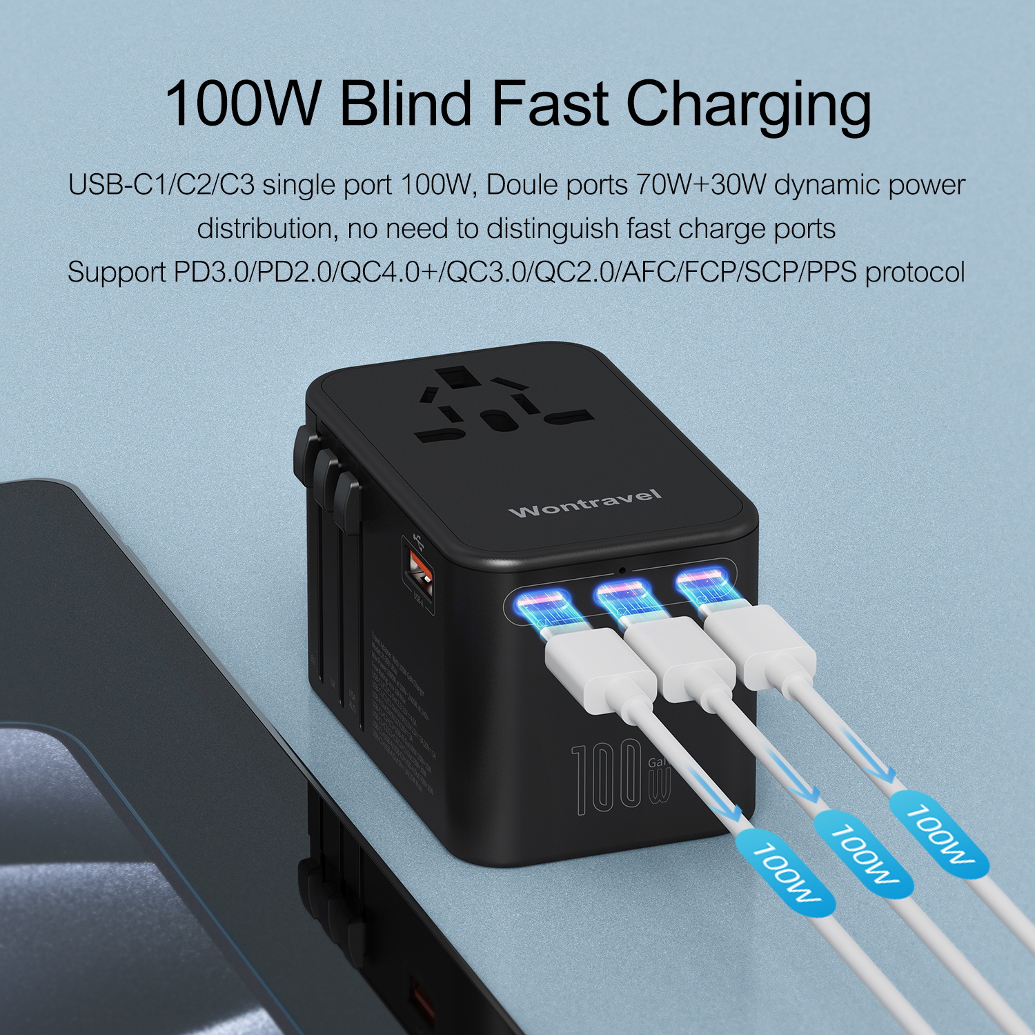 Wontravel 100W GaN PD Power Adapter Travel Quick Charger International Universal Travel Adapter Type-c for Laptop