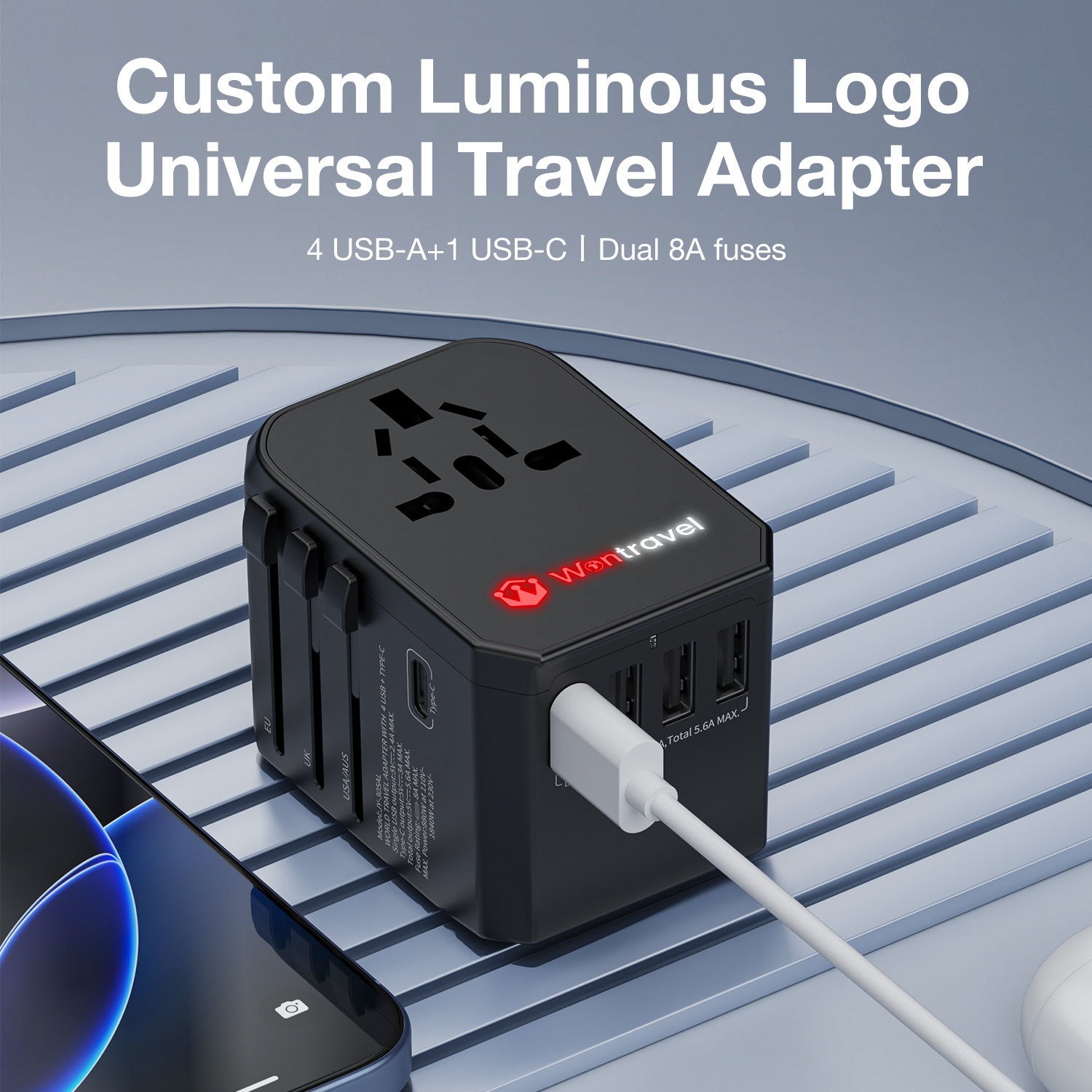 Wontravel Hot Sales Luminous Logo Universal Adaptor Travel International World Travel Adapter with USB C