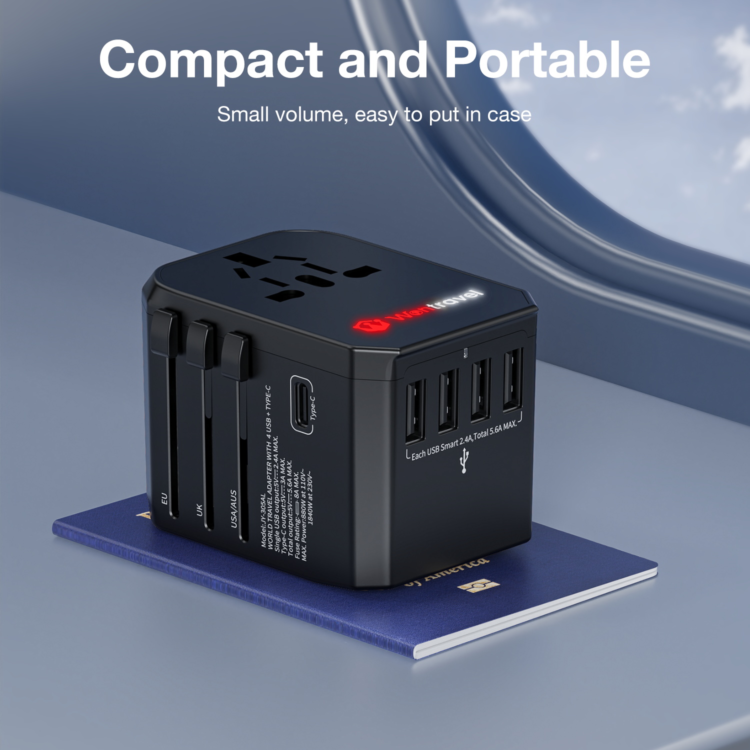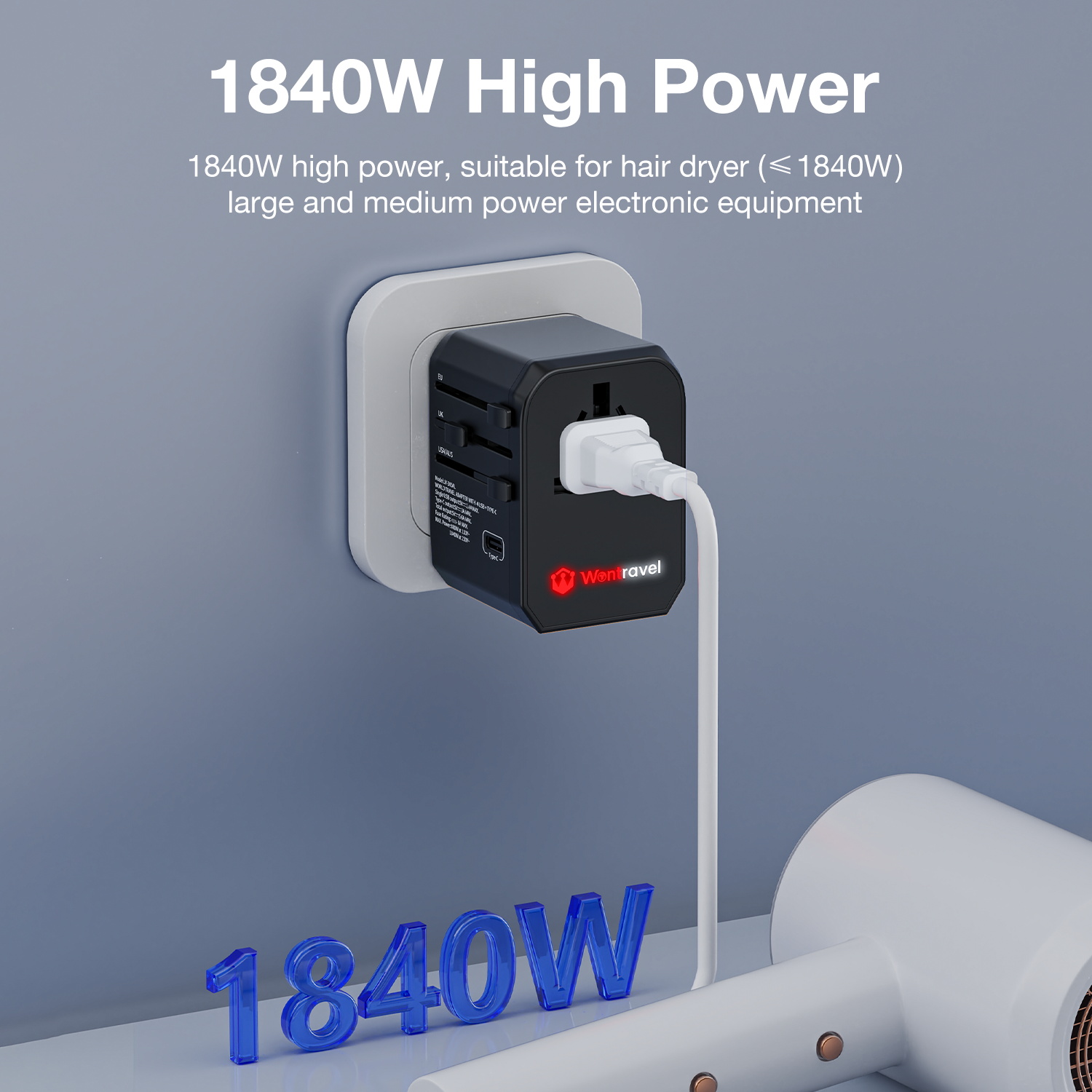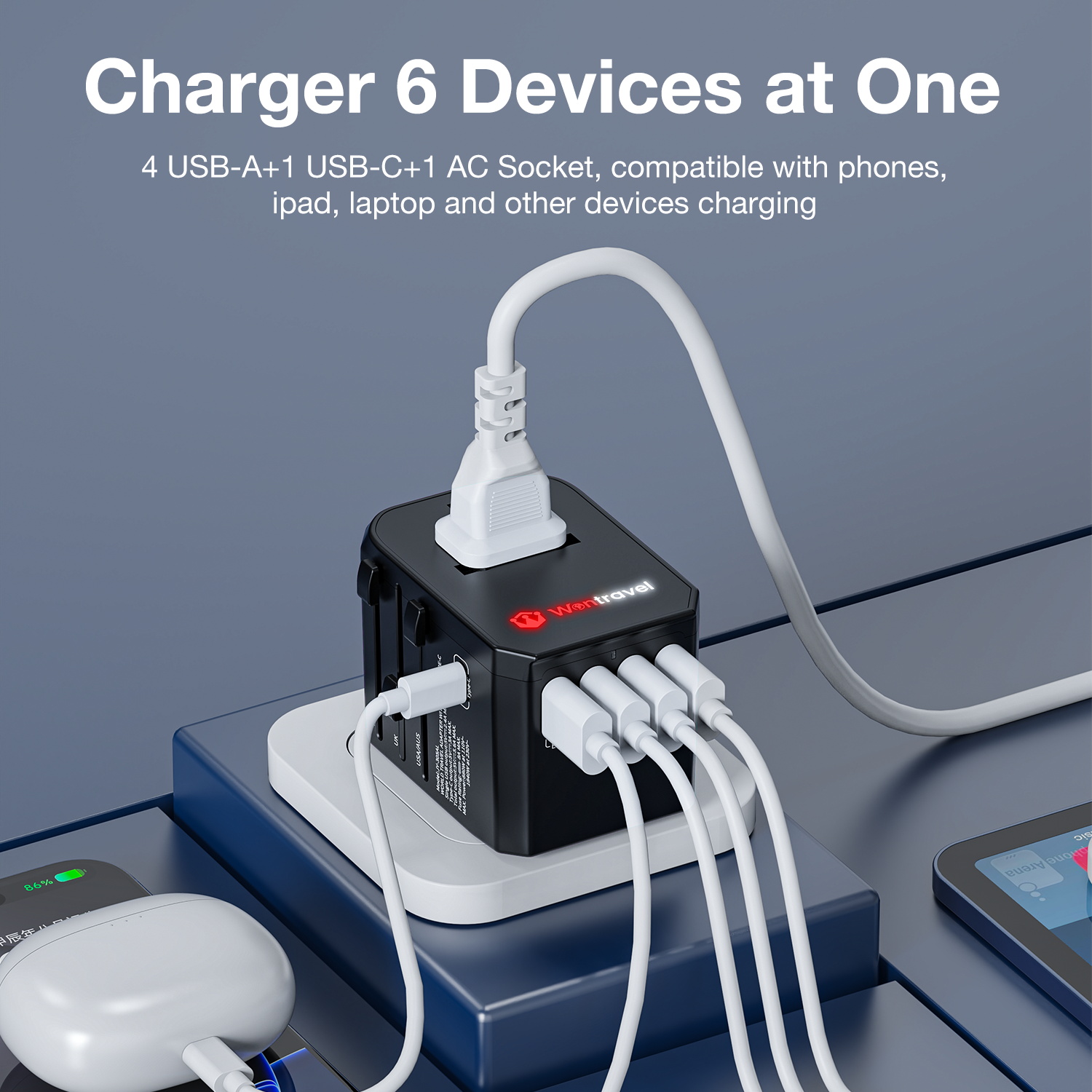 Wontravel Newest Luminous Logo Fast Charging Worldplug Universal Travel Adapter Worldwide 45W All in One