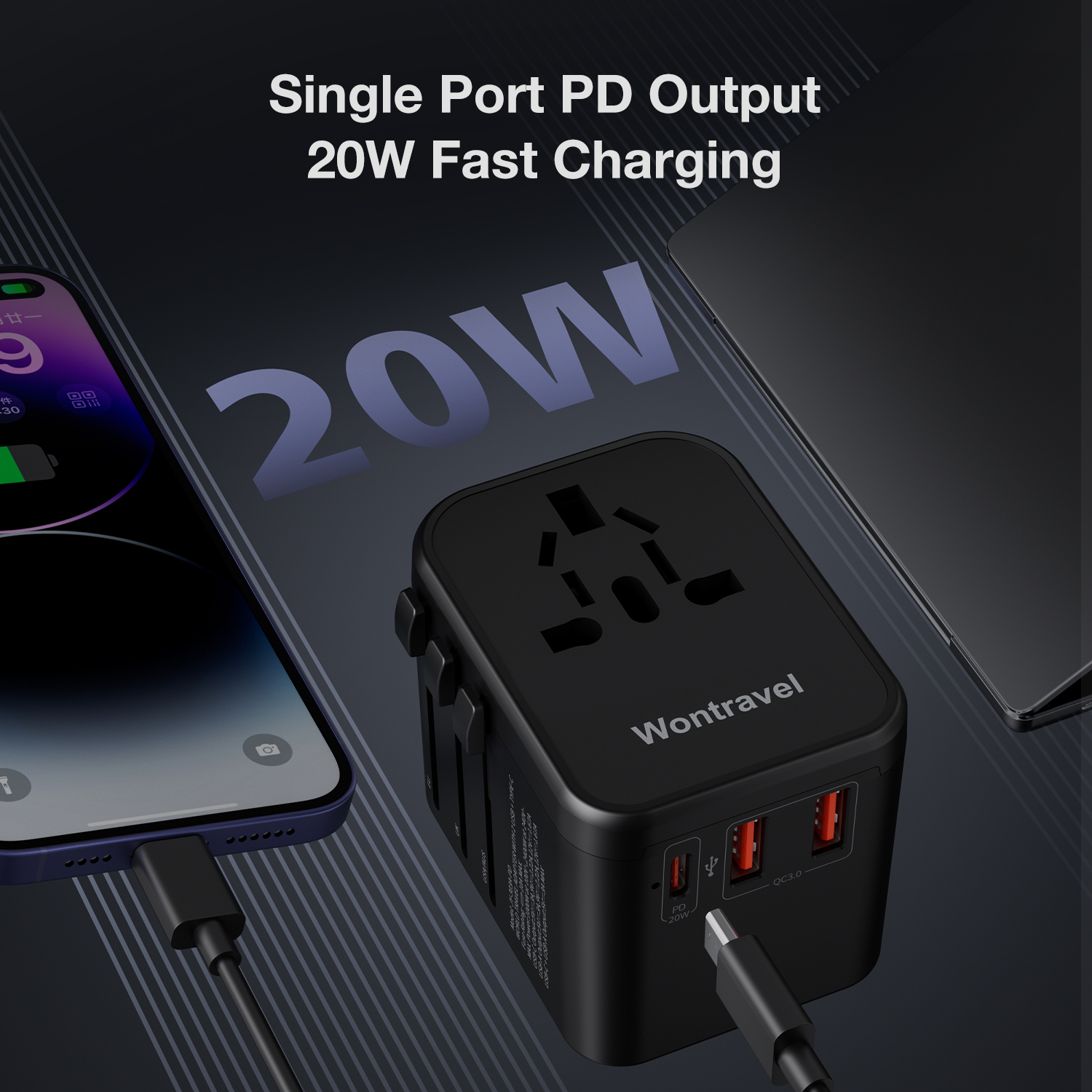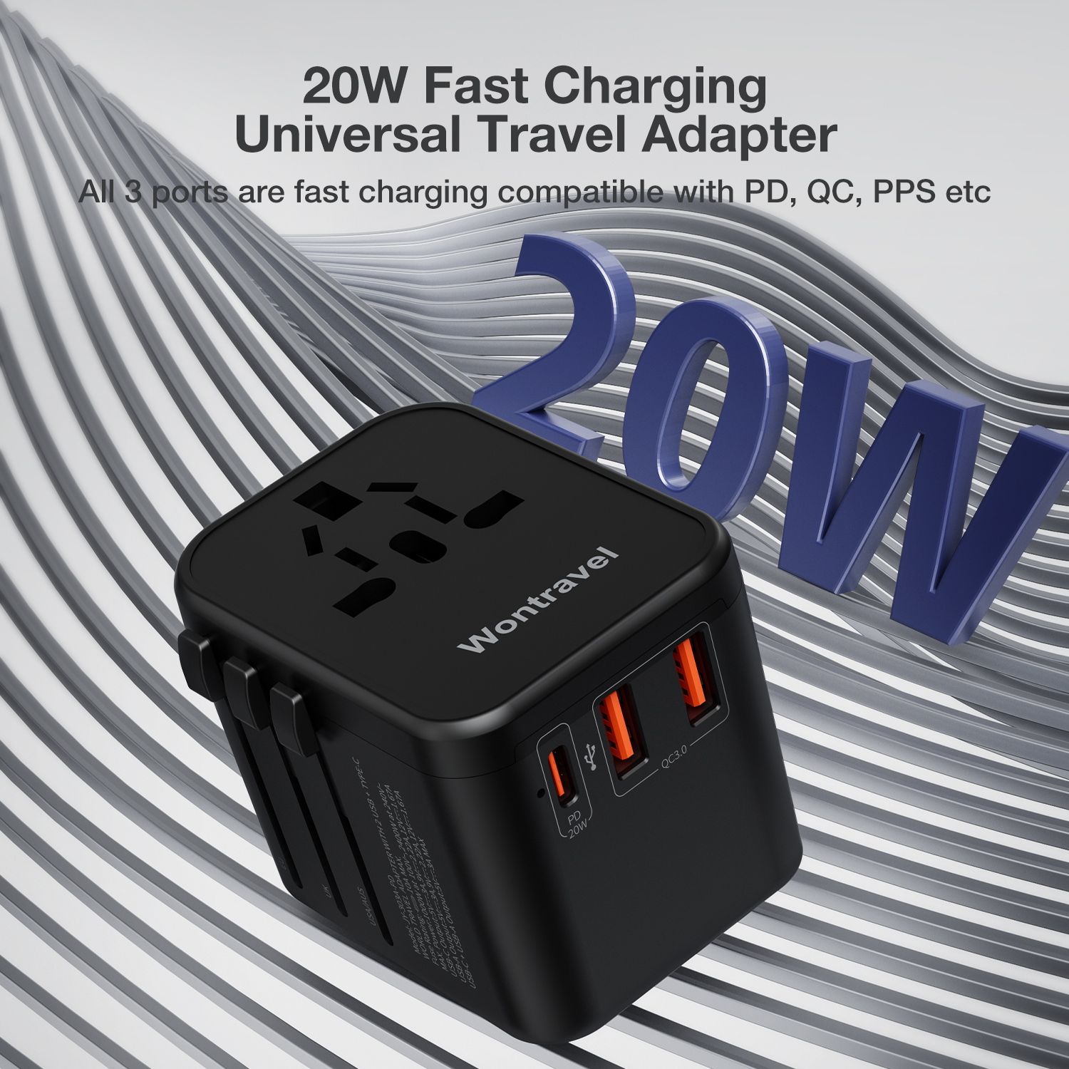 Wontravel 20W PD Quick Charger Universal Travel Adaptor World Plug 3 USB Internationale Travel Adapter All in One