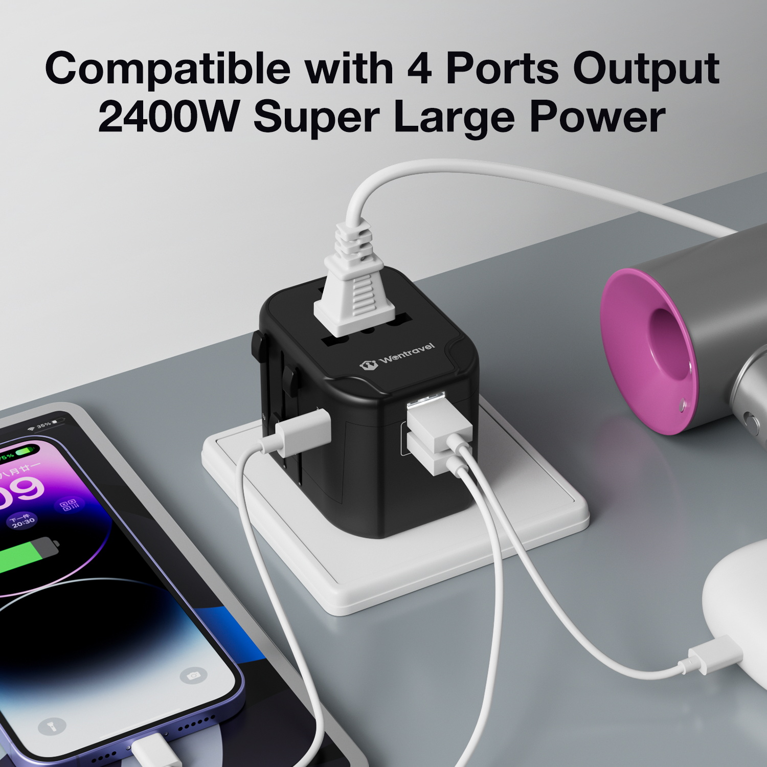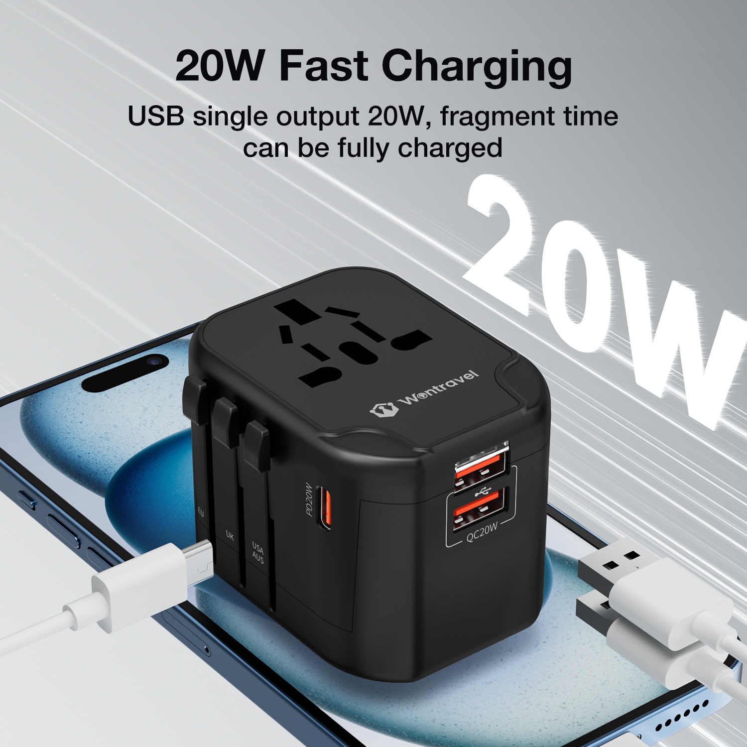 Wontravel Newest AC 1840W Wideworld Travel Adaptor Multi Plug Power Universal Travel Adapters with Dual USB 3 Type C
