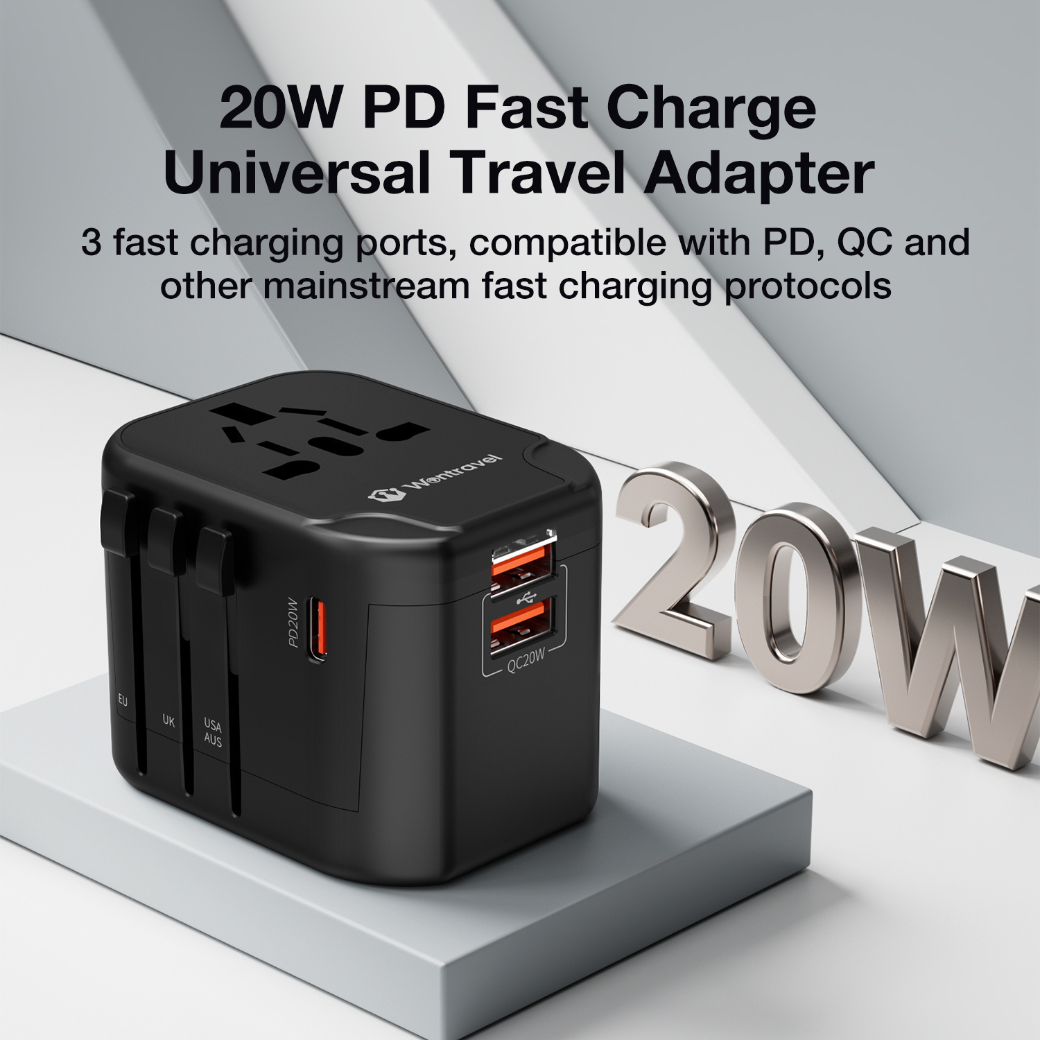 Wontravel 100W GaN PD Power Adapter Travel Quick Charger International Universal Travel Adapter Type-c for Laptop