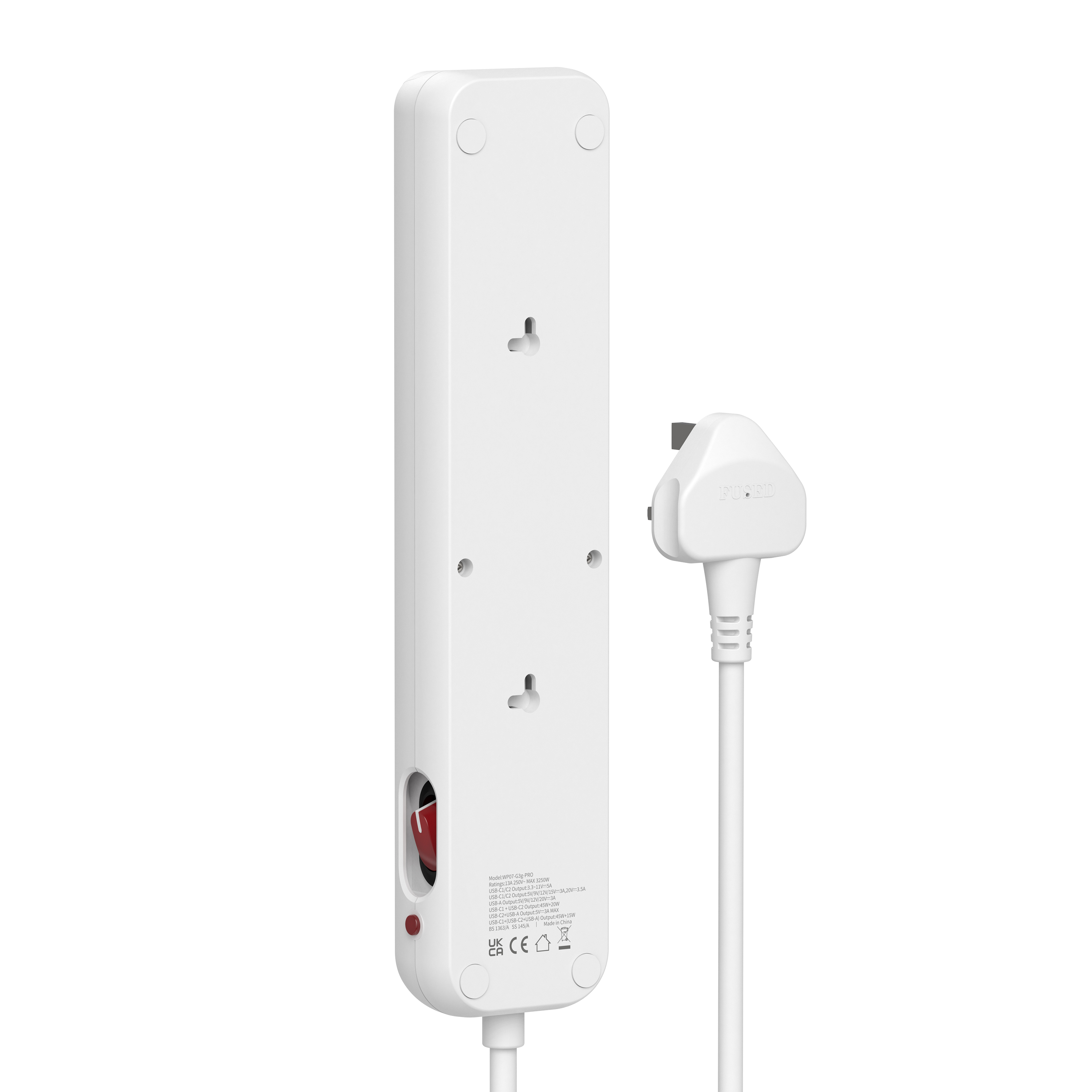 70W PD Fast Charging UK Power Strip (3AC+2USB-C+1USB-A)