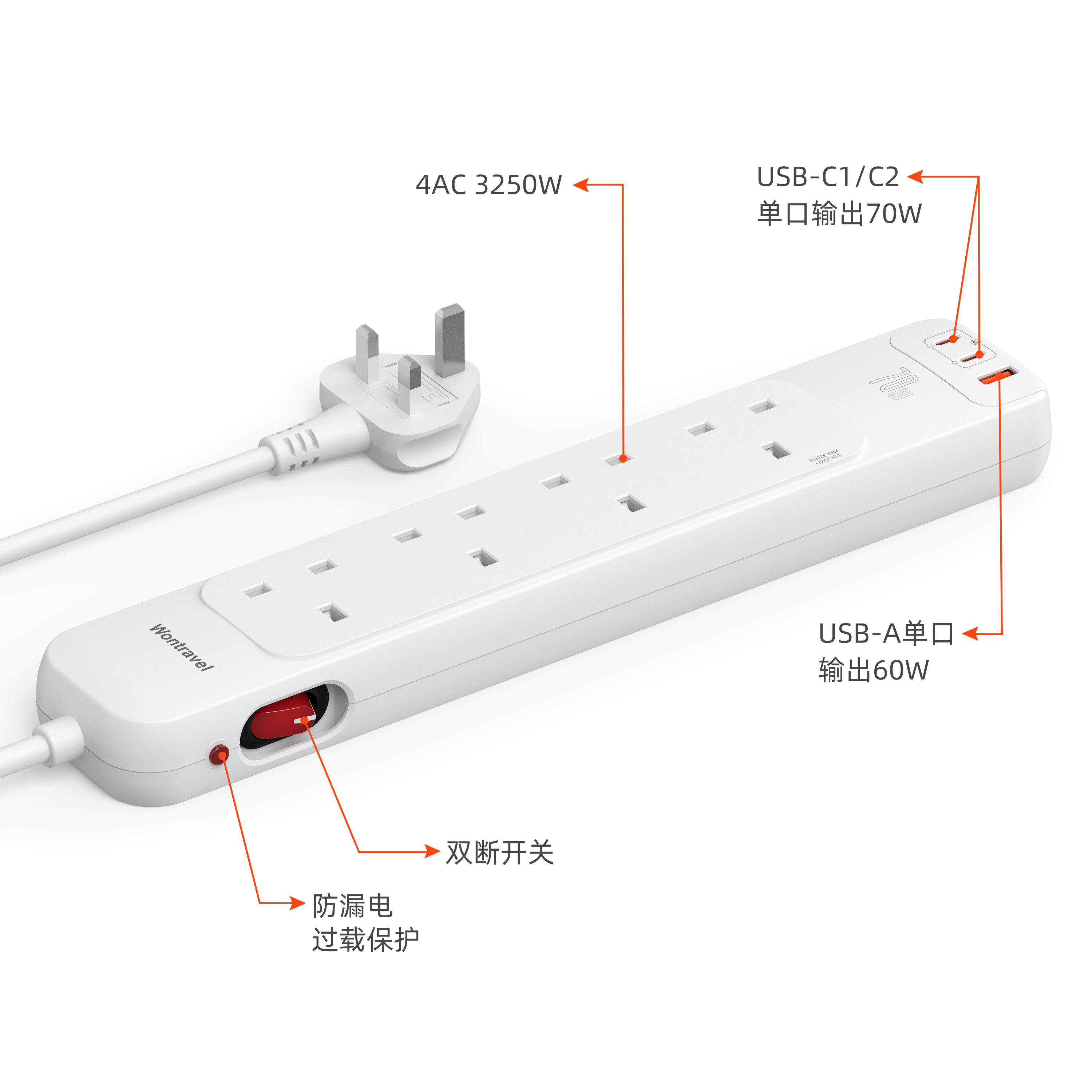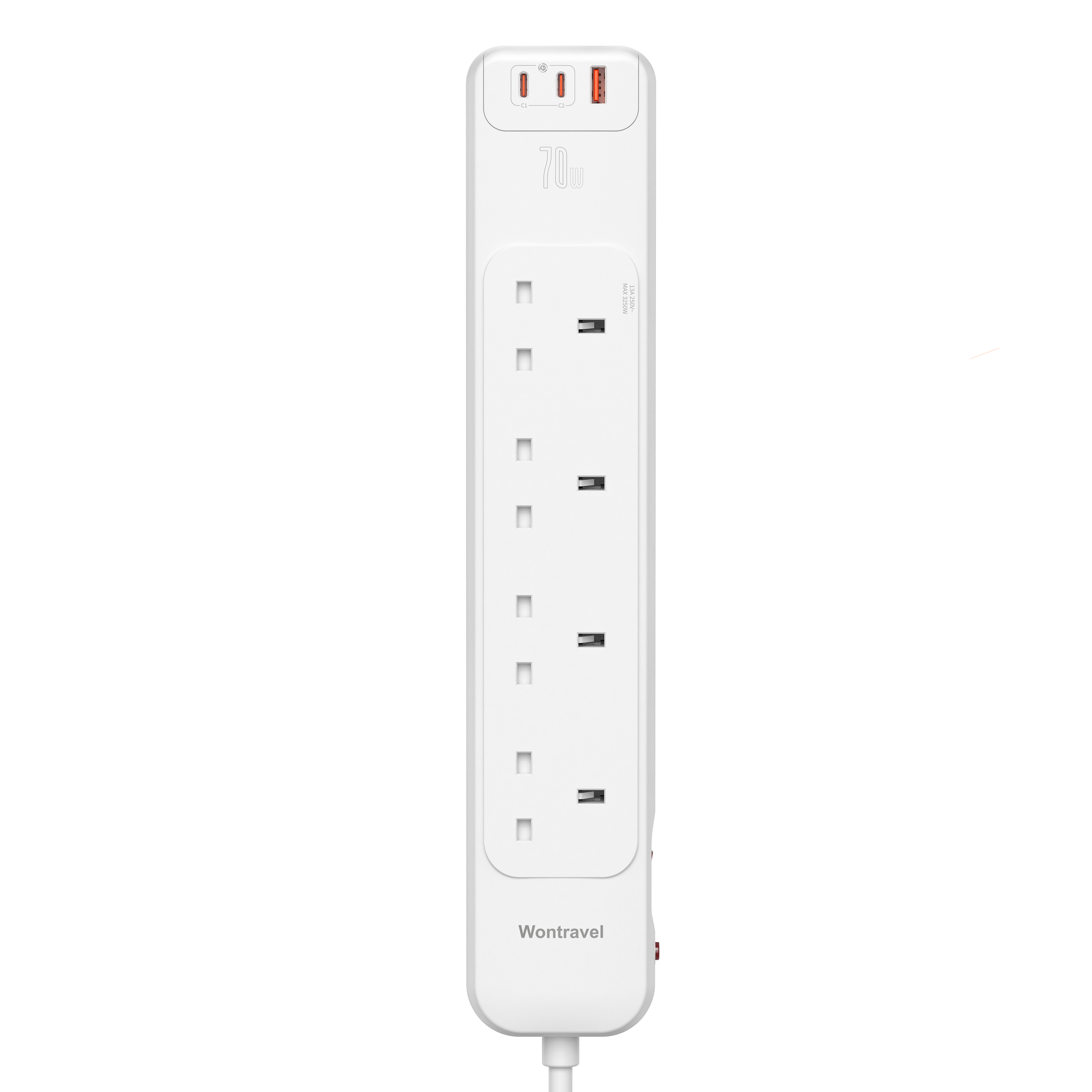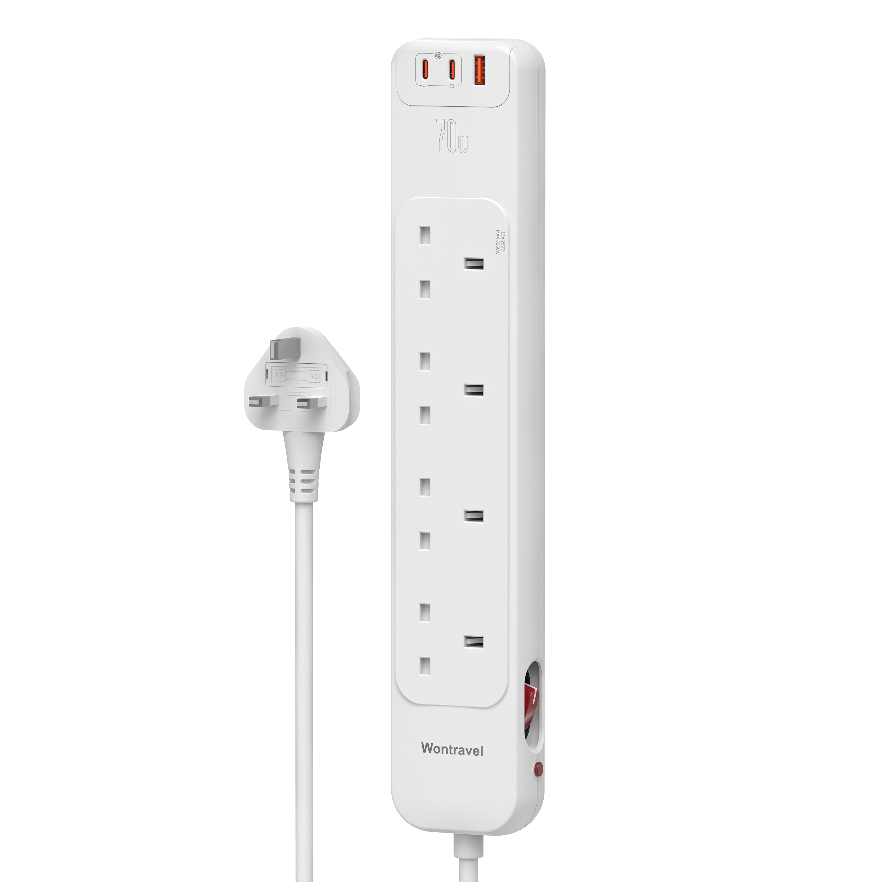 70W PD Fast Charging UK Power Strip(4AC+2USB-C+1USB-A)
