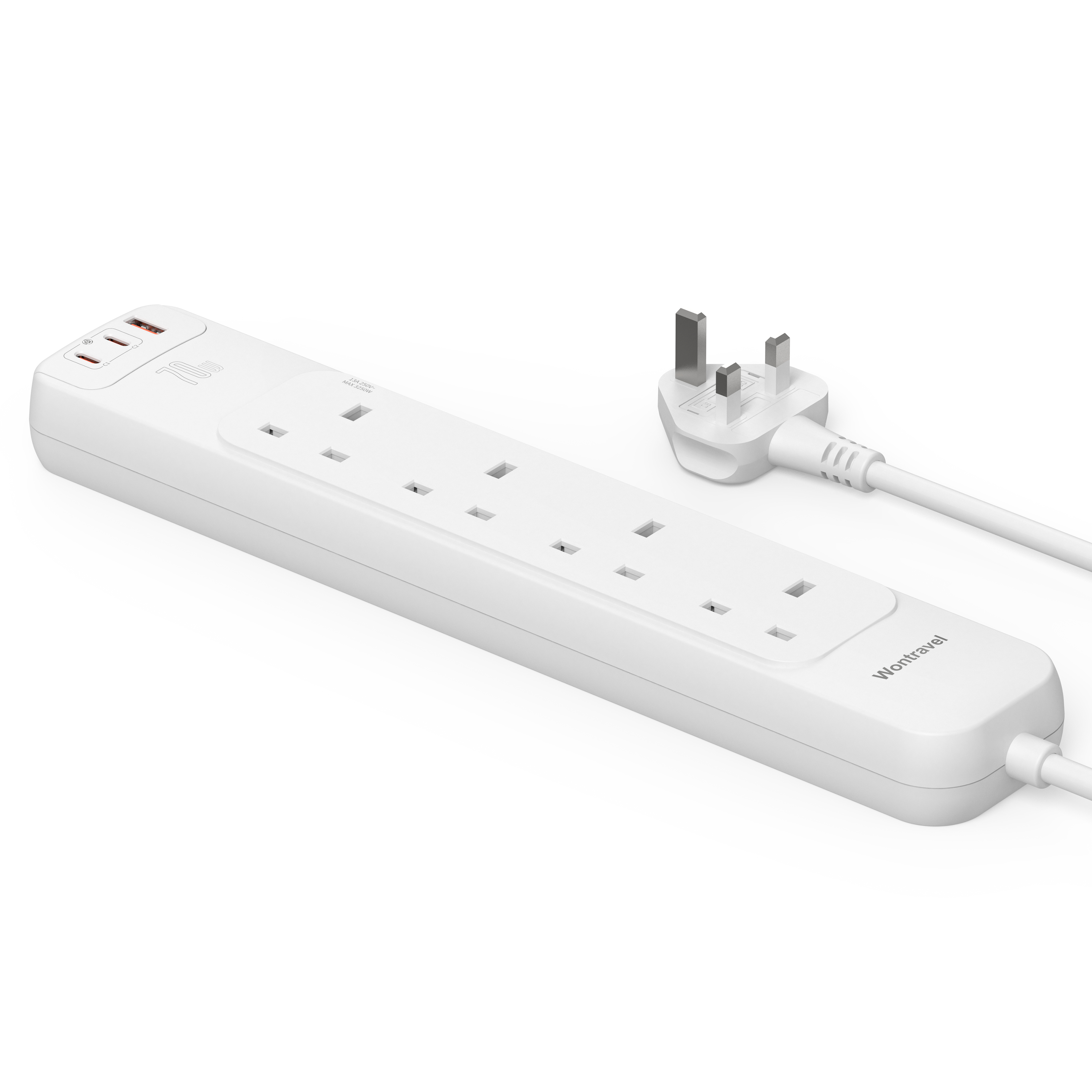 70W PD Fast Charging UK Power Strip (3AC+2USB-C+1USB-A)