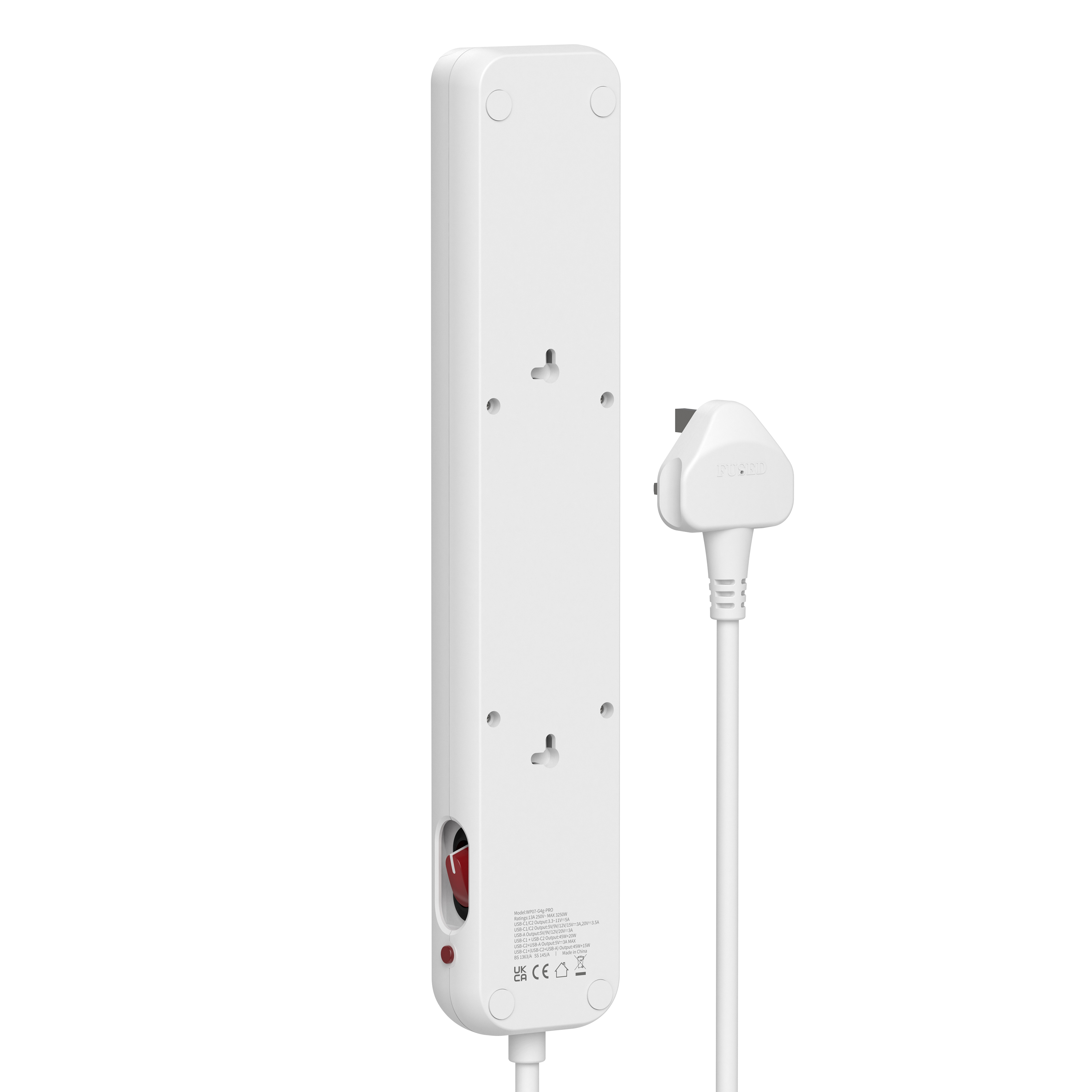30W PD Fast Charging UK Power Strip (4AC+1USB-C+2USB-A)