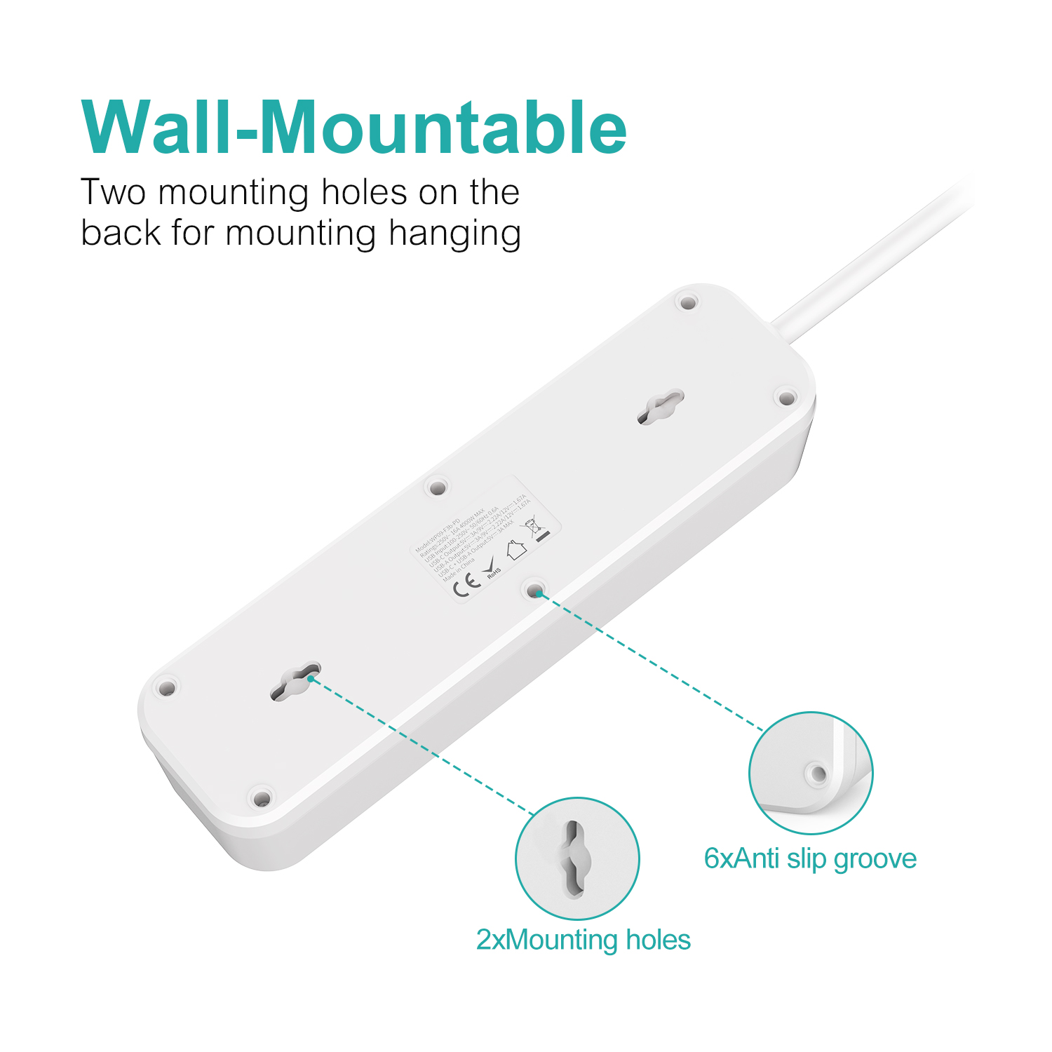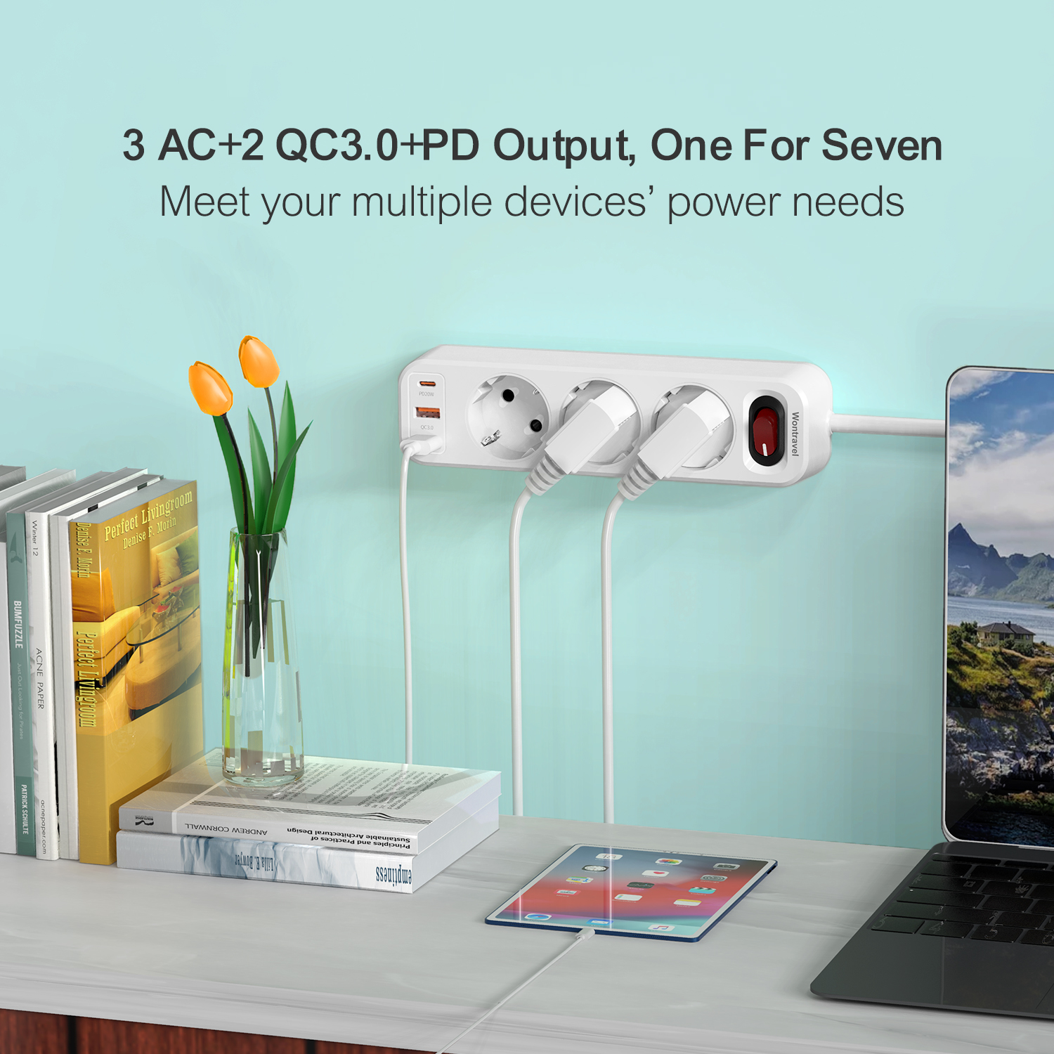 Wontravel EU type 3 outlet extension USB power strip PD 20W power plug socket extension