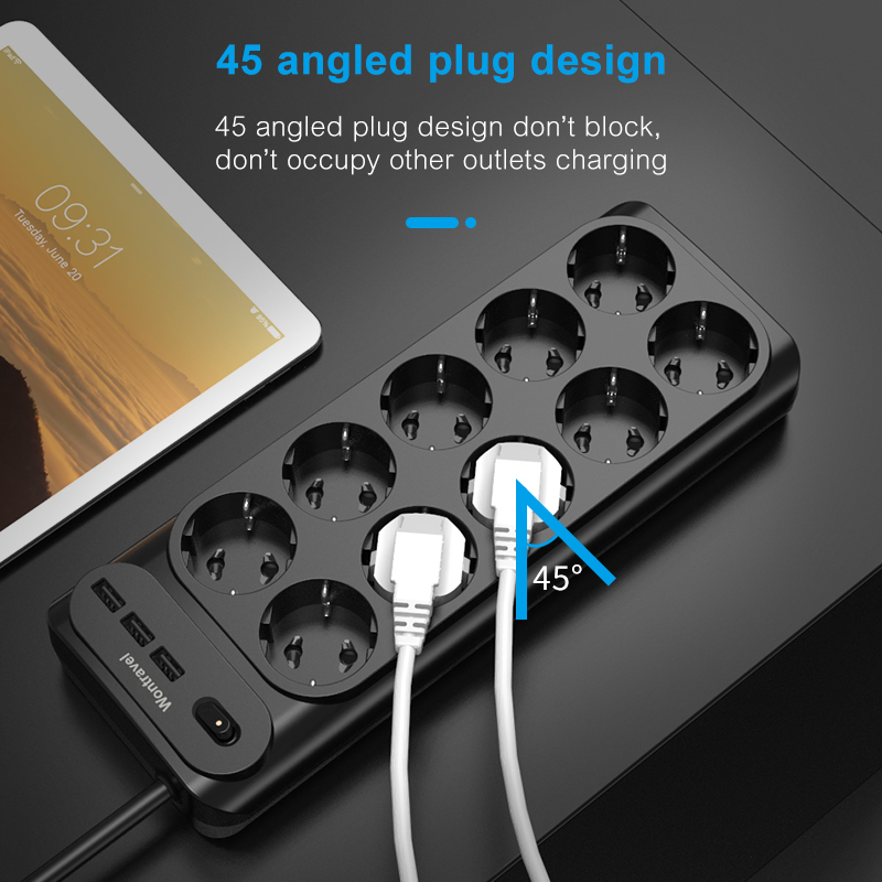 Wontravel New Shuko 10 way power strip USB EU extension lead 3 USB power board