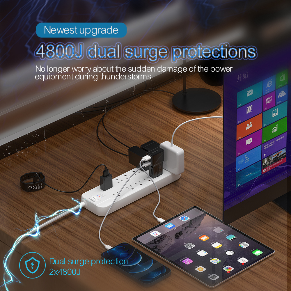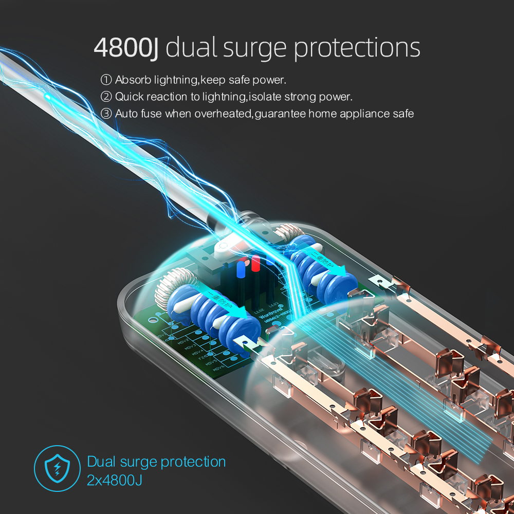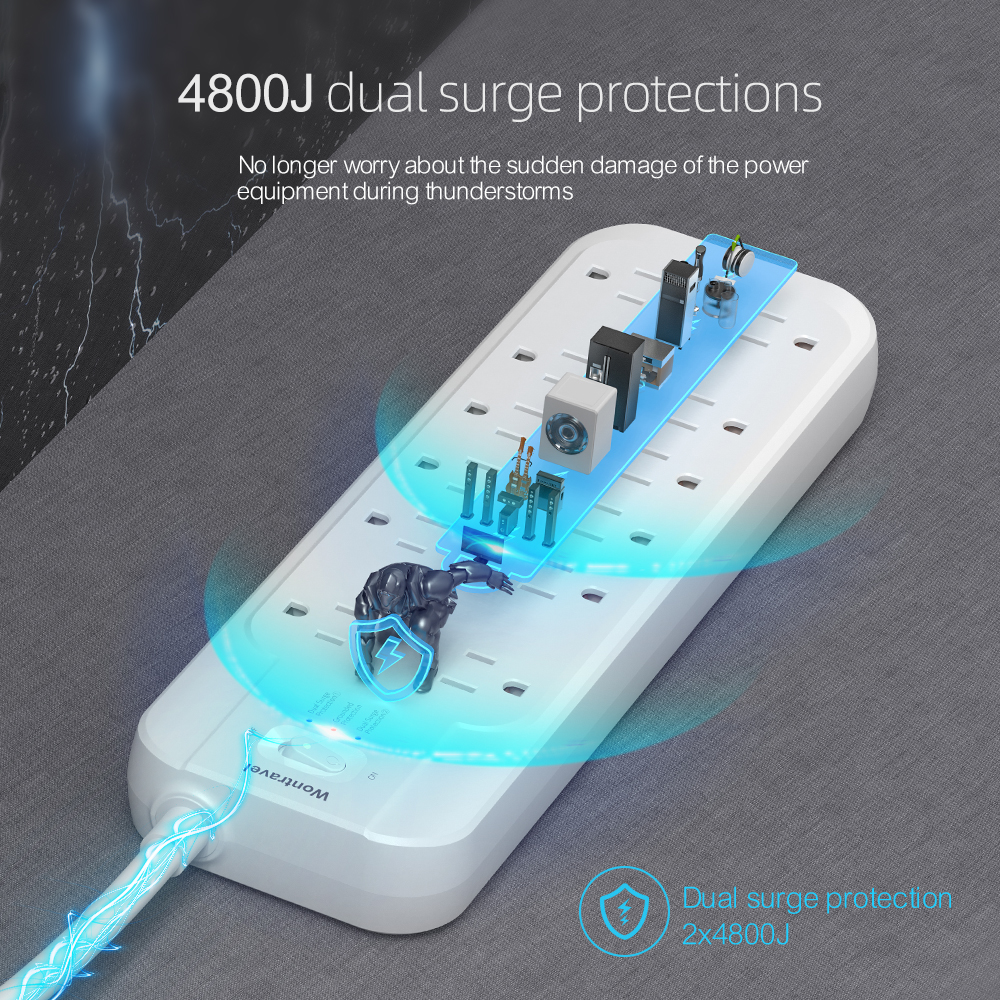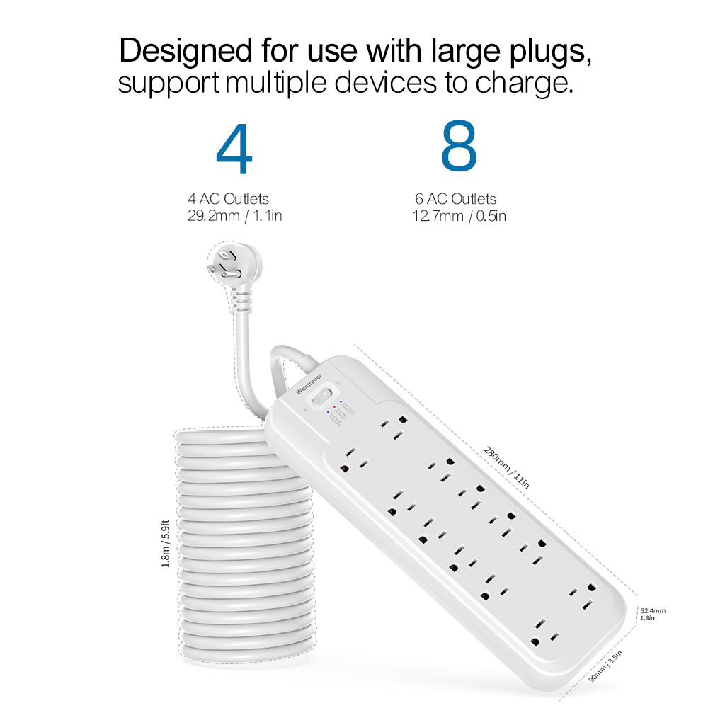 Wontravel Universal extension socket dual surge protection long cord ac outlet power strip