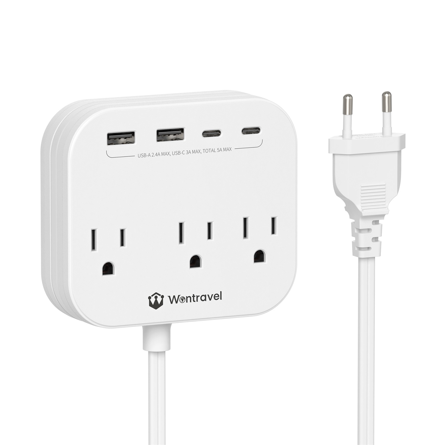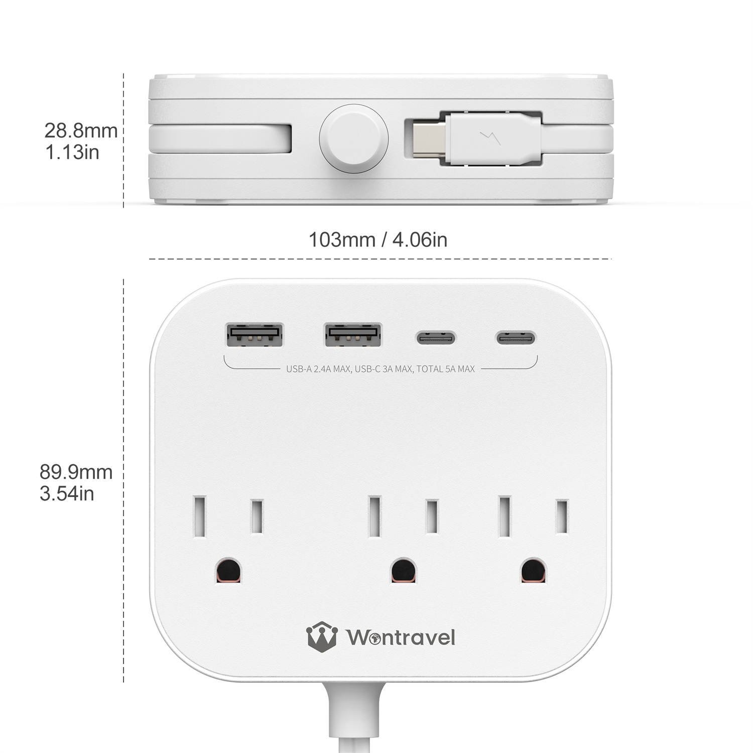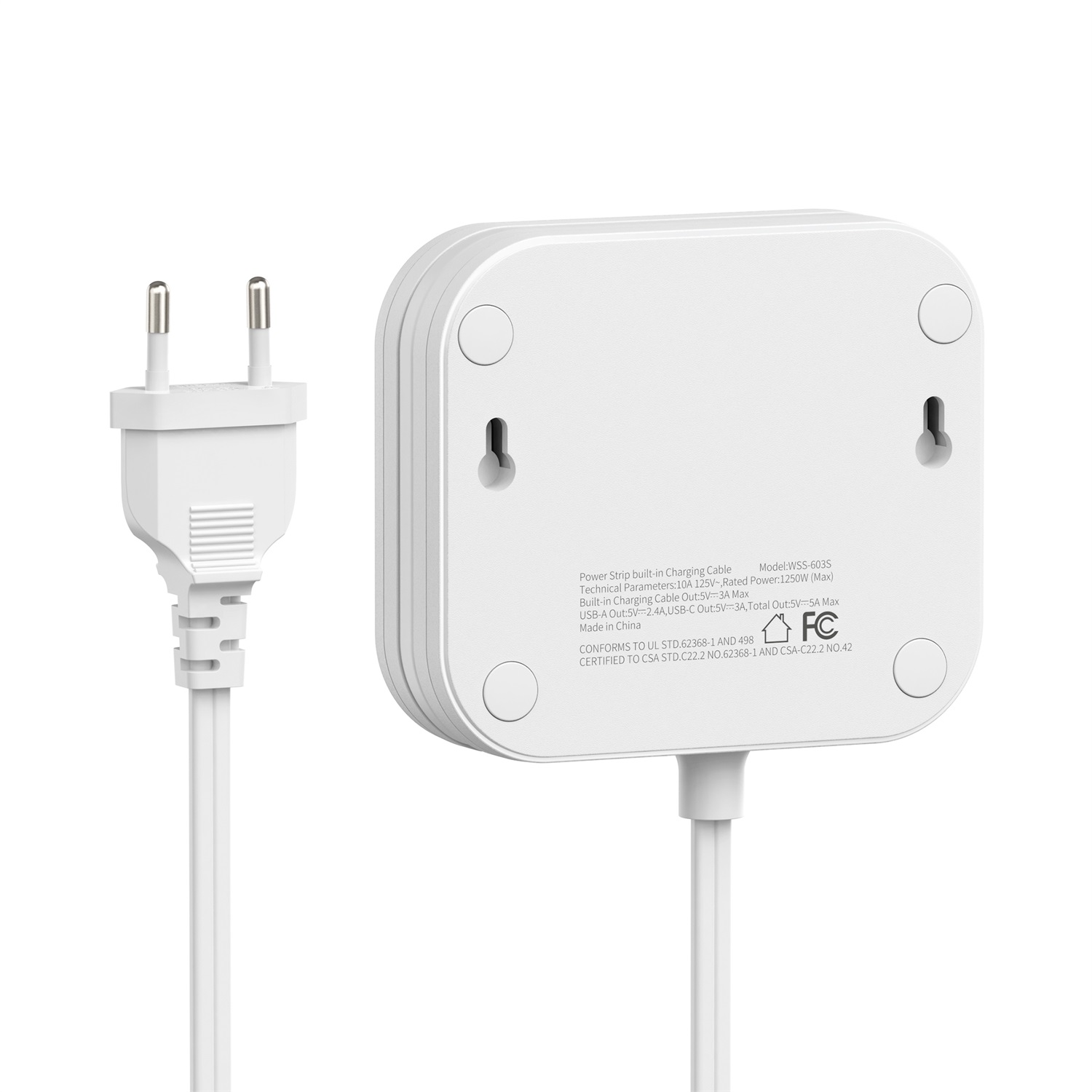 USB Power Strip 3 Way Outlet Extender Type C power extension EU Power Strip Surge Protector Built-in Retractable Cable