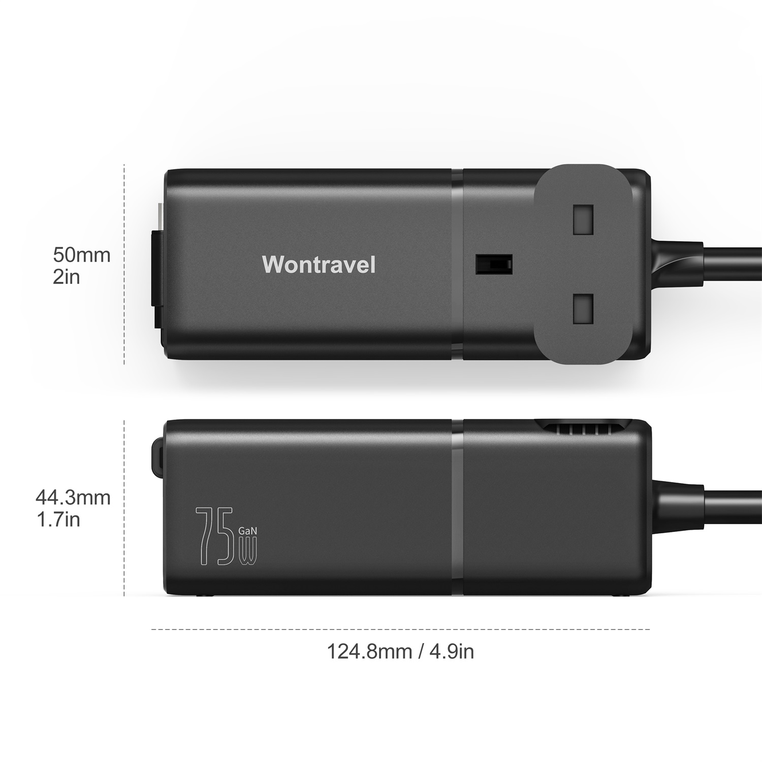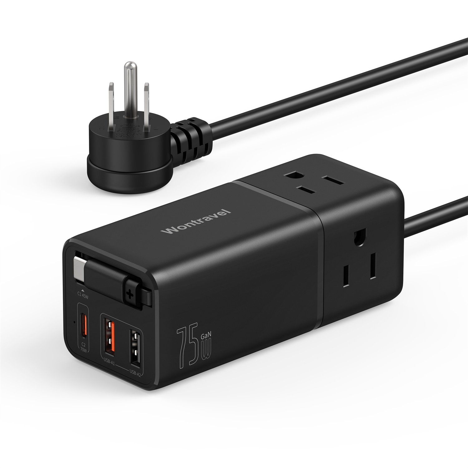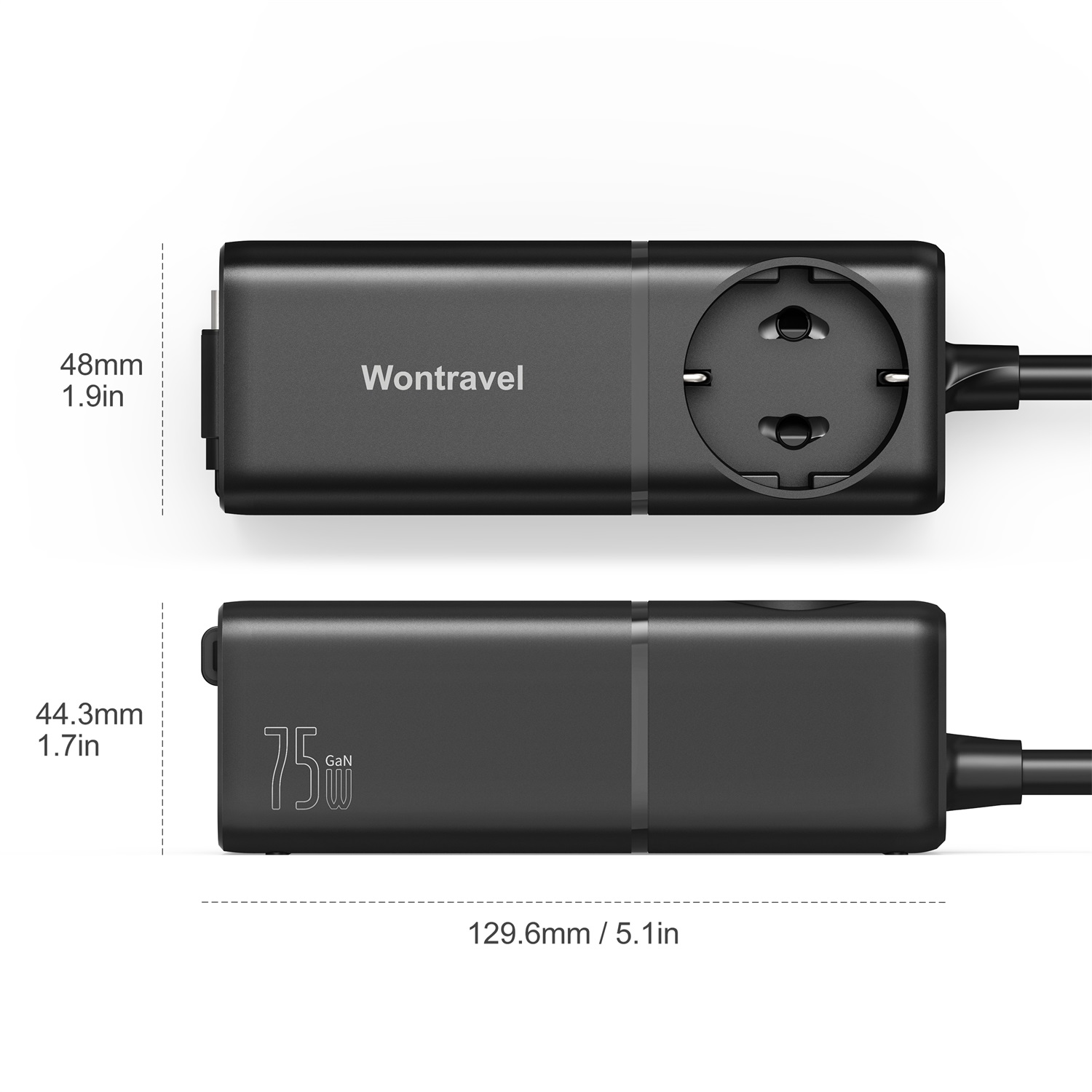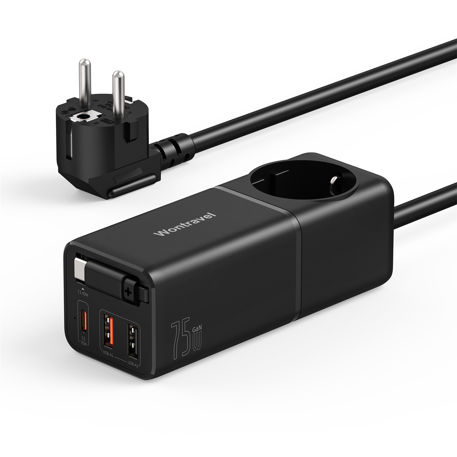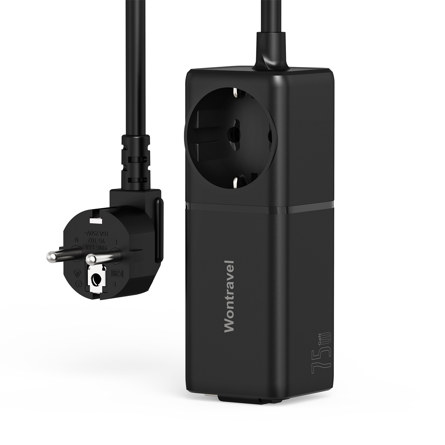 Wontravel EU Version 75W GaN Built-in Retractable Cable Desktop charger