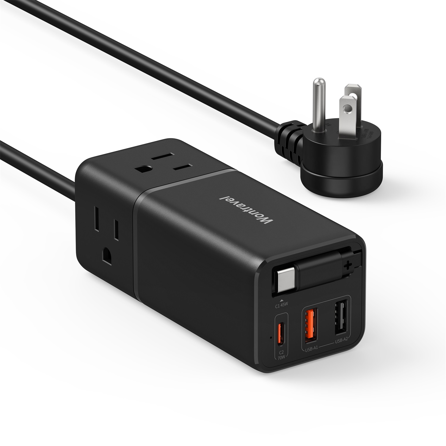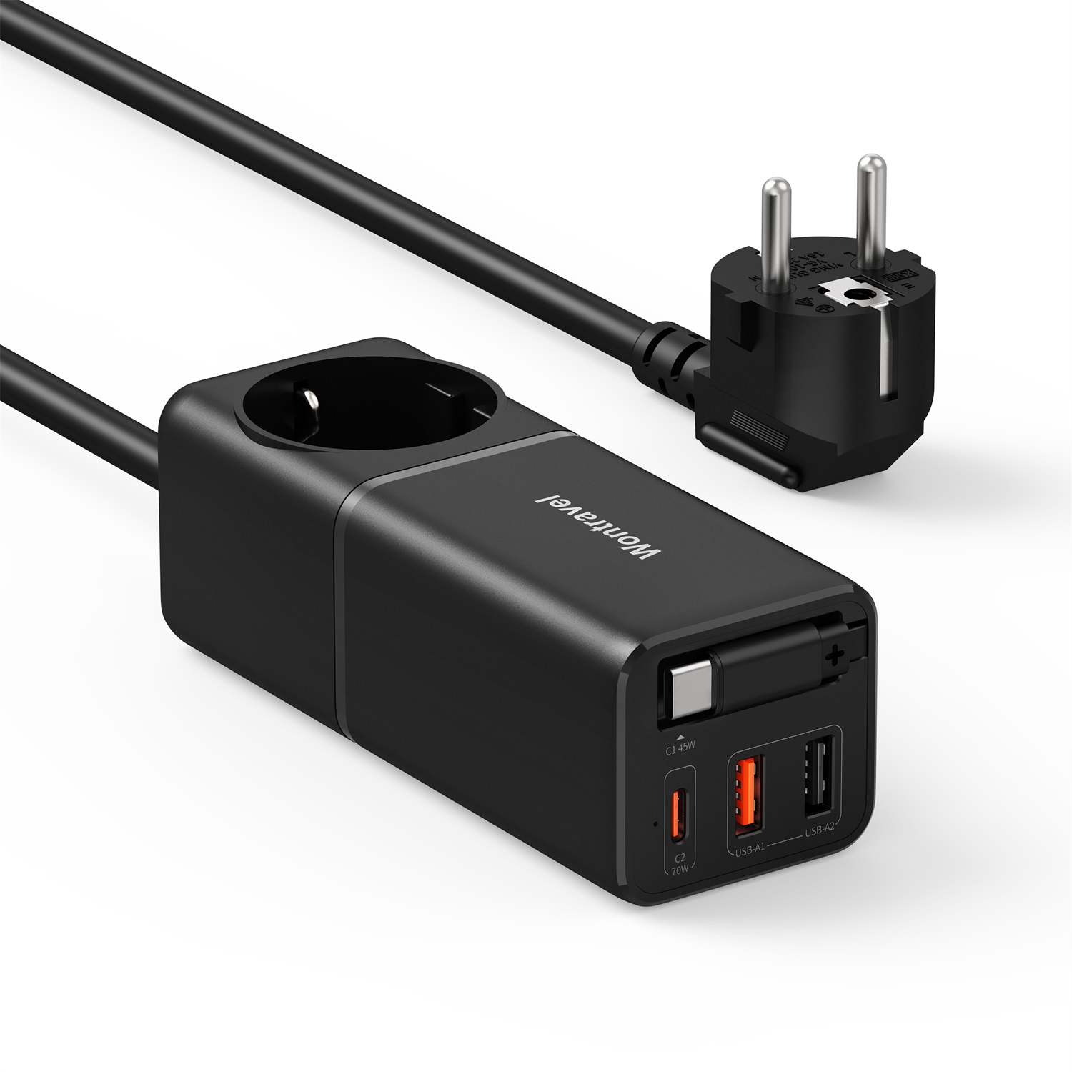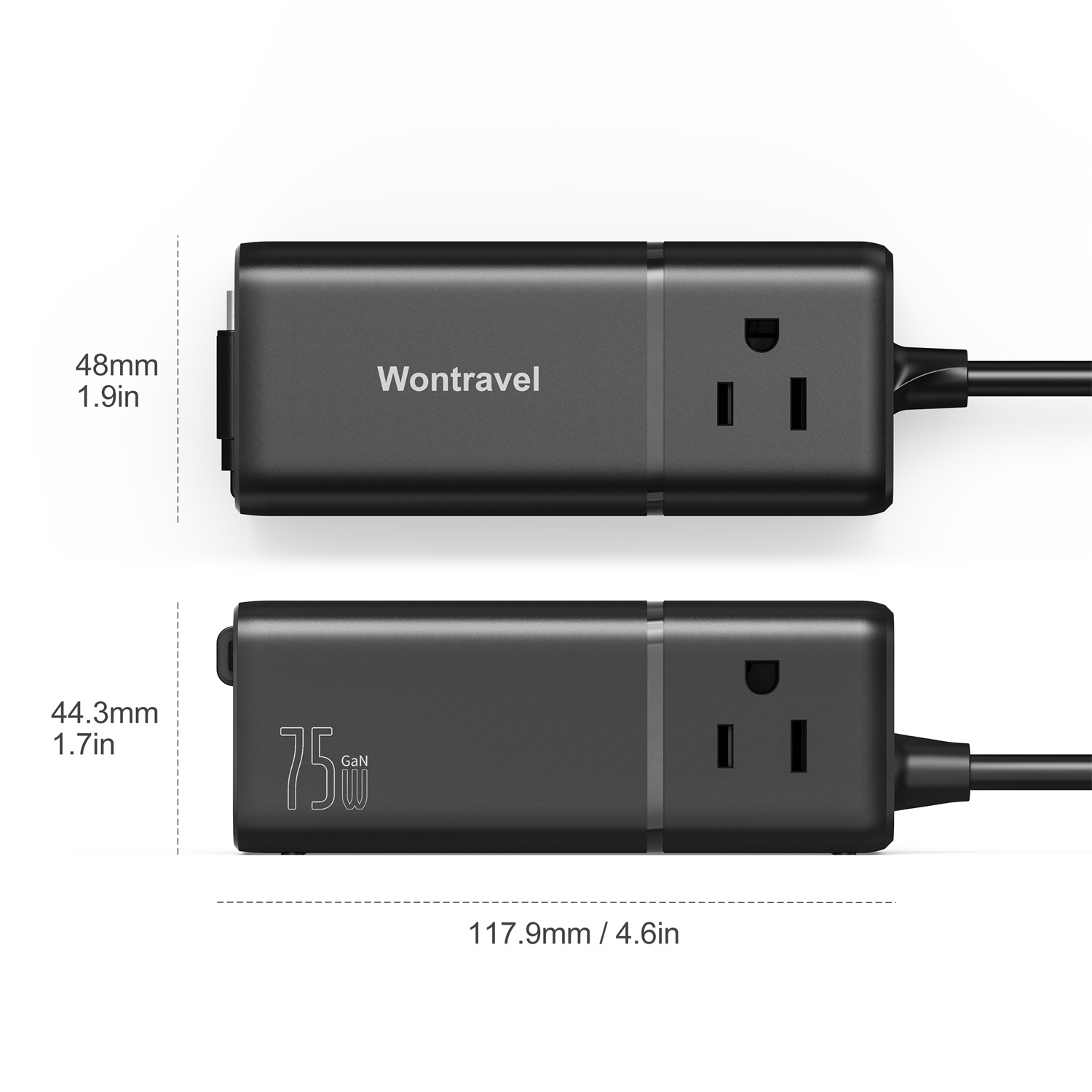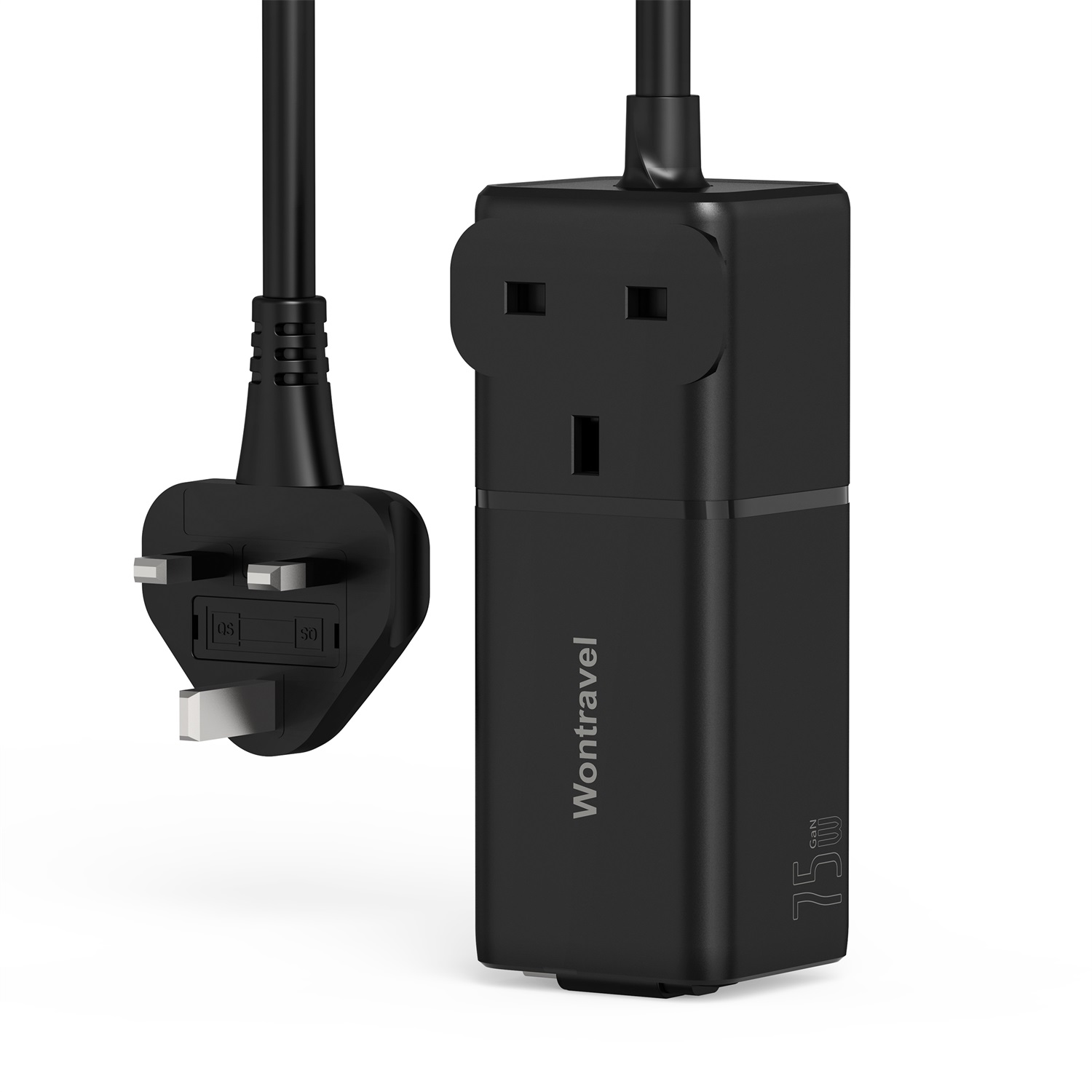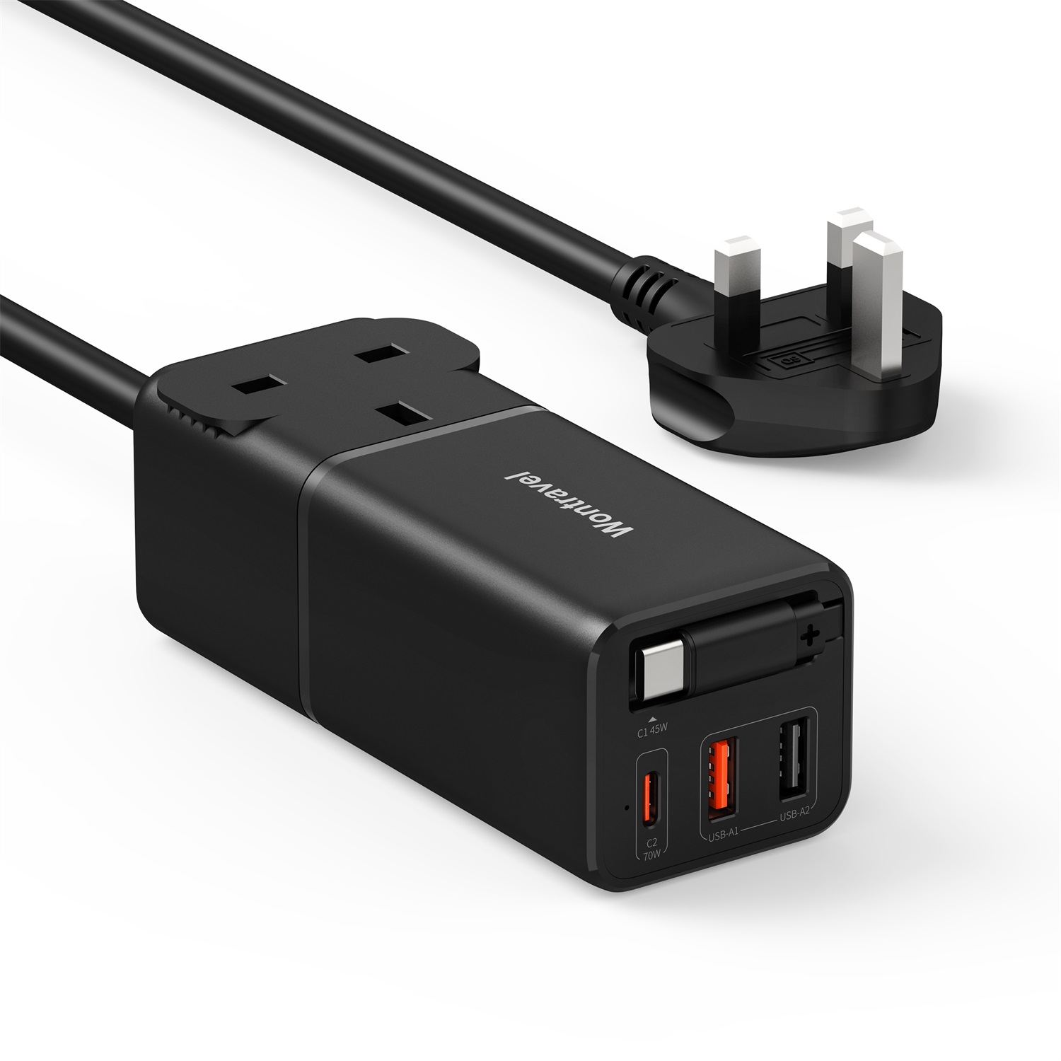 Wontravel EU Version 75W GaN Built-in Retractable Cable Desktop charger