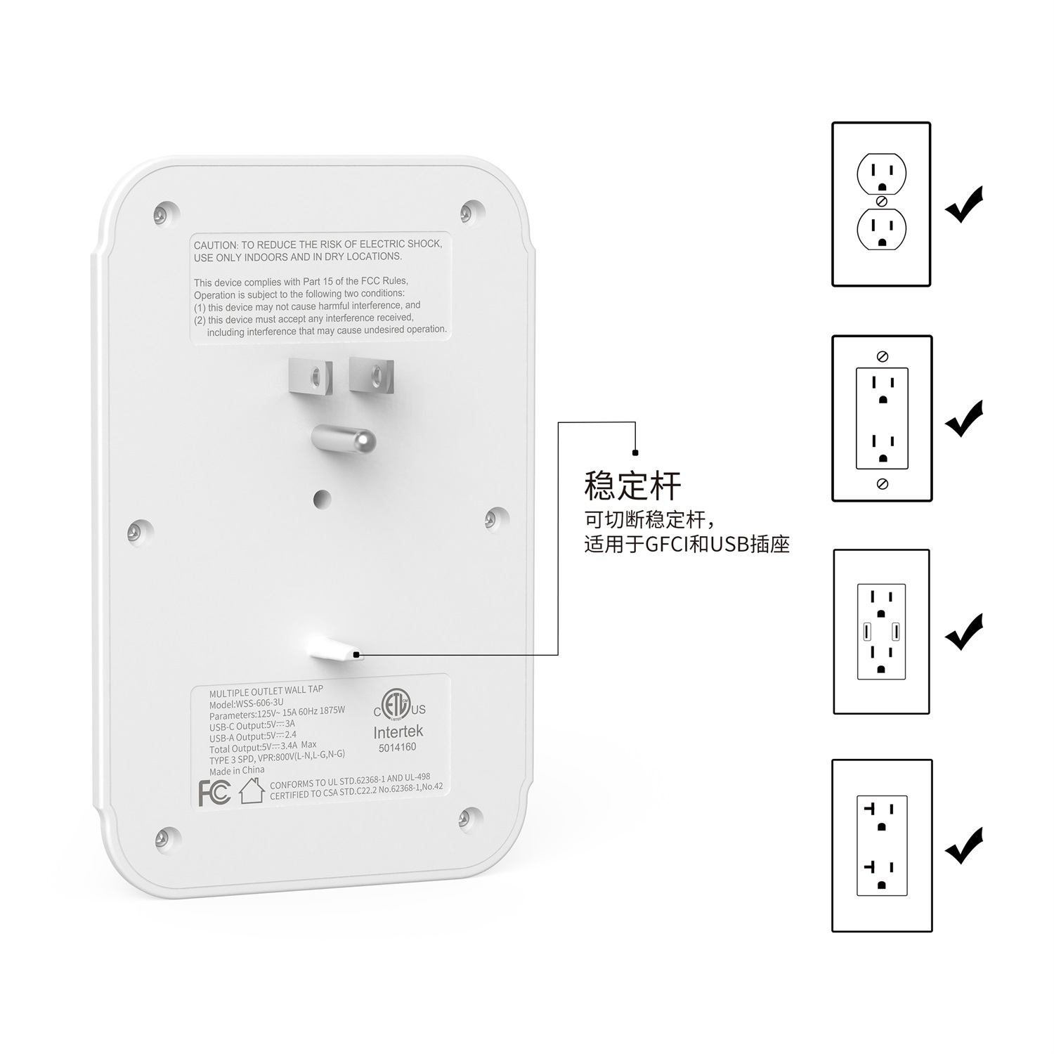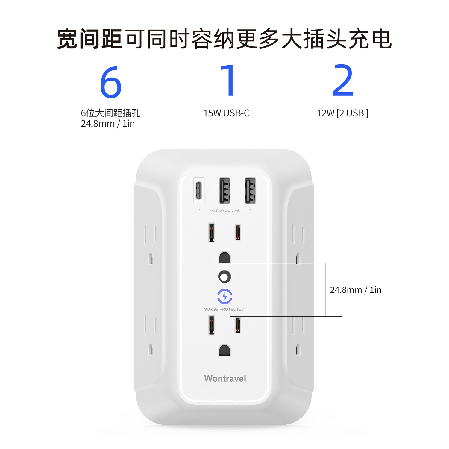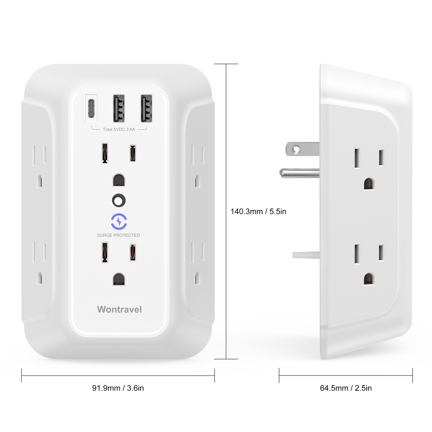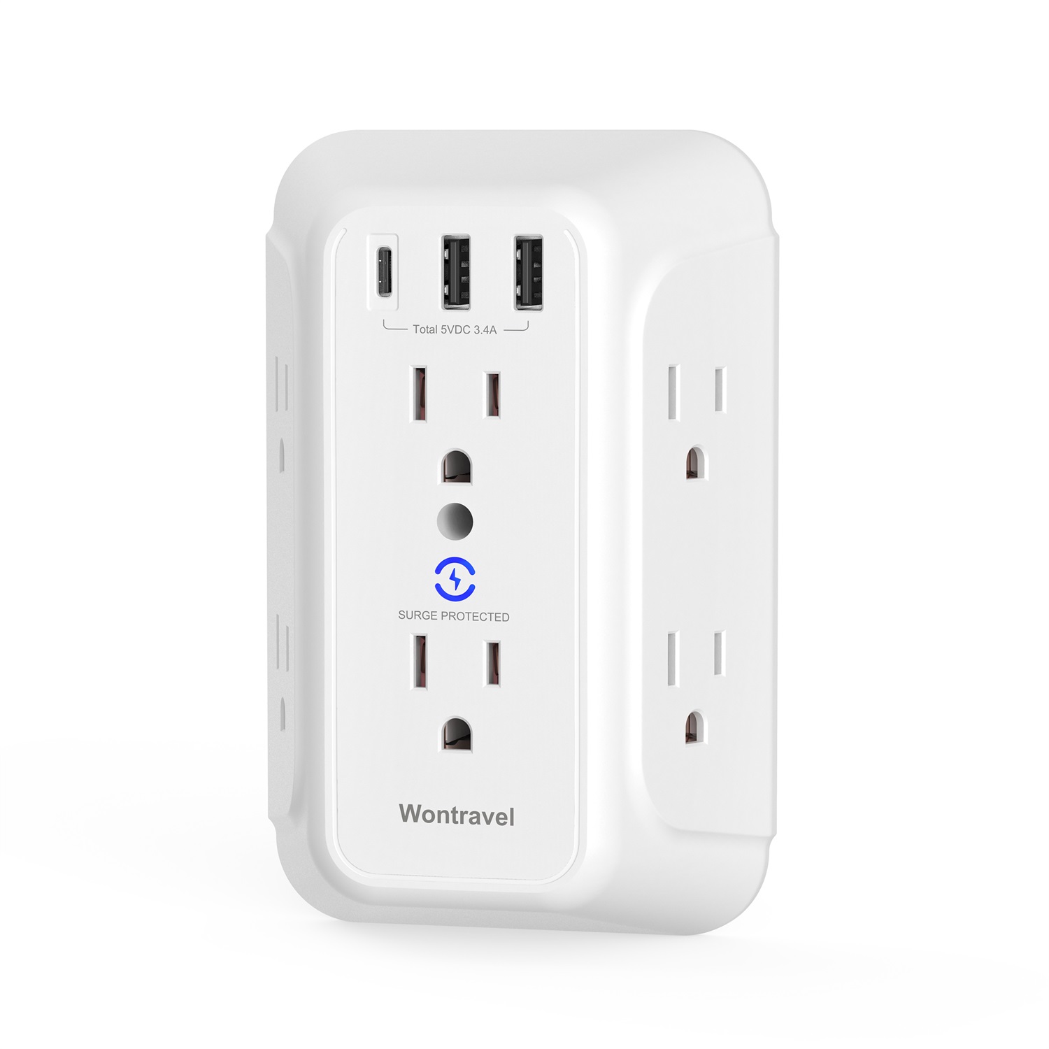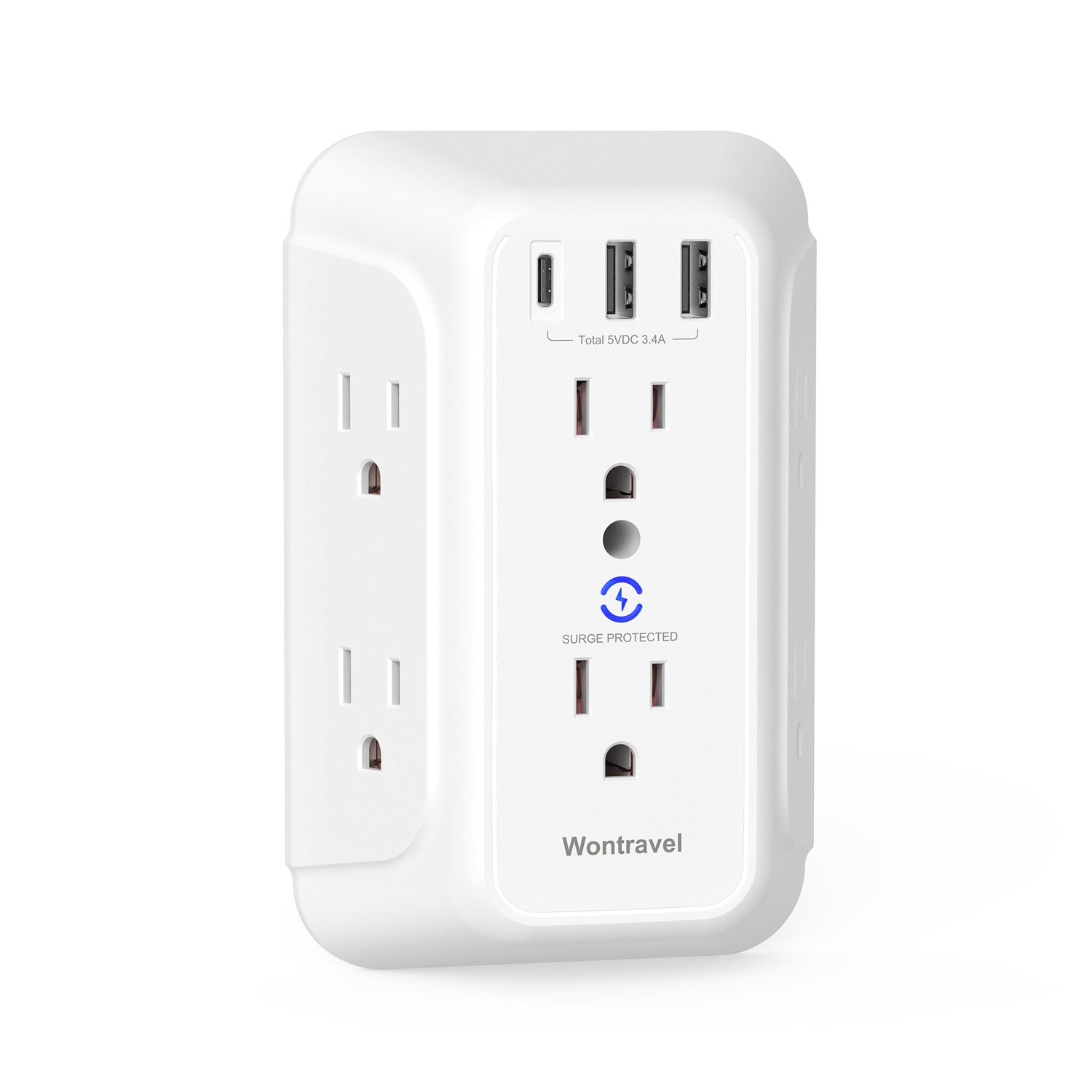 Wontravel Wall outlet USB A USB C Type C surge protector outlet socket extender