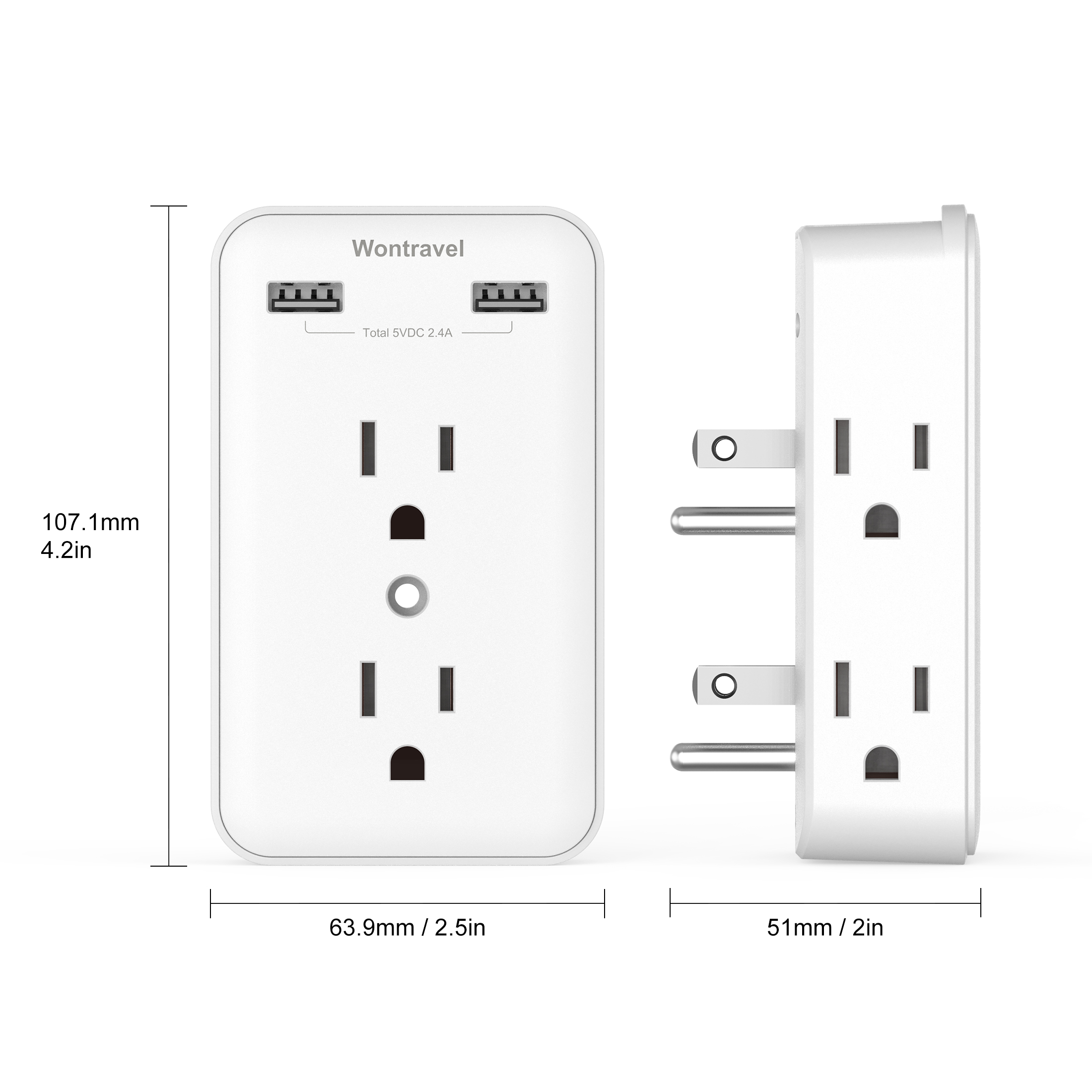 Wontravel US wall charger 3 AC outlets with 2 USB charger wall outlet socket extender with USB