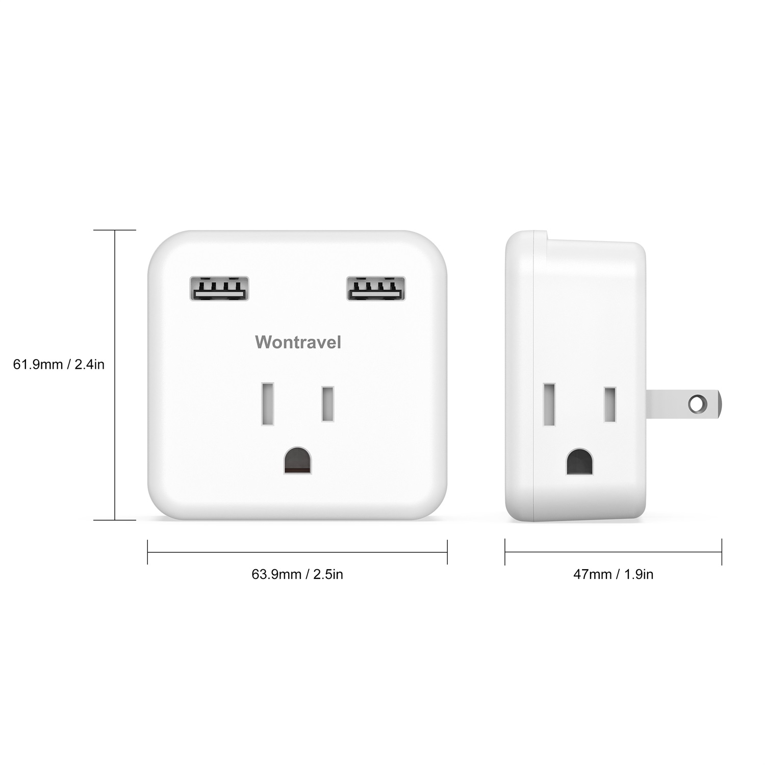 Wontravel US wall charger 3 AC outlets with 2 USB charger wall outlet socket extender with USB
