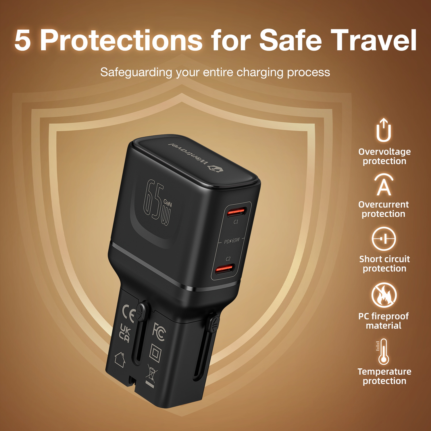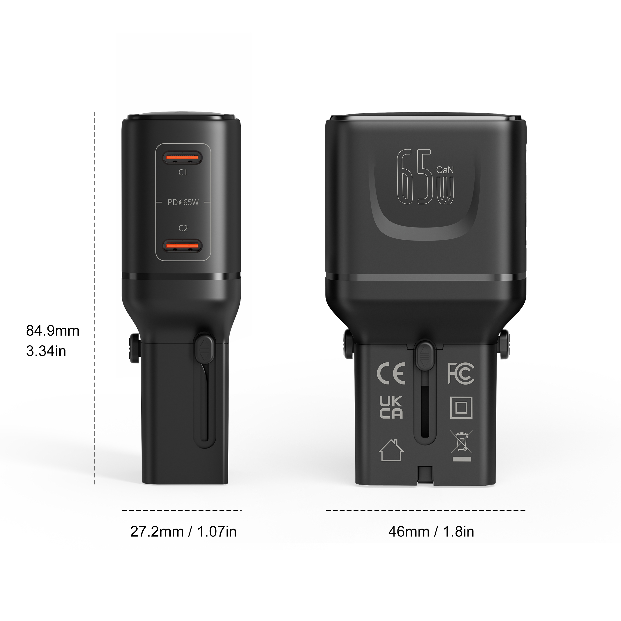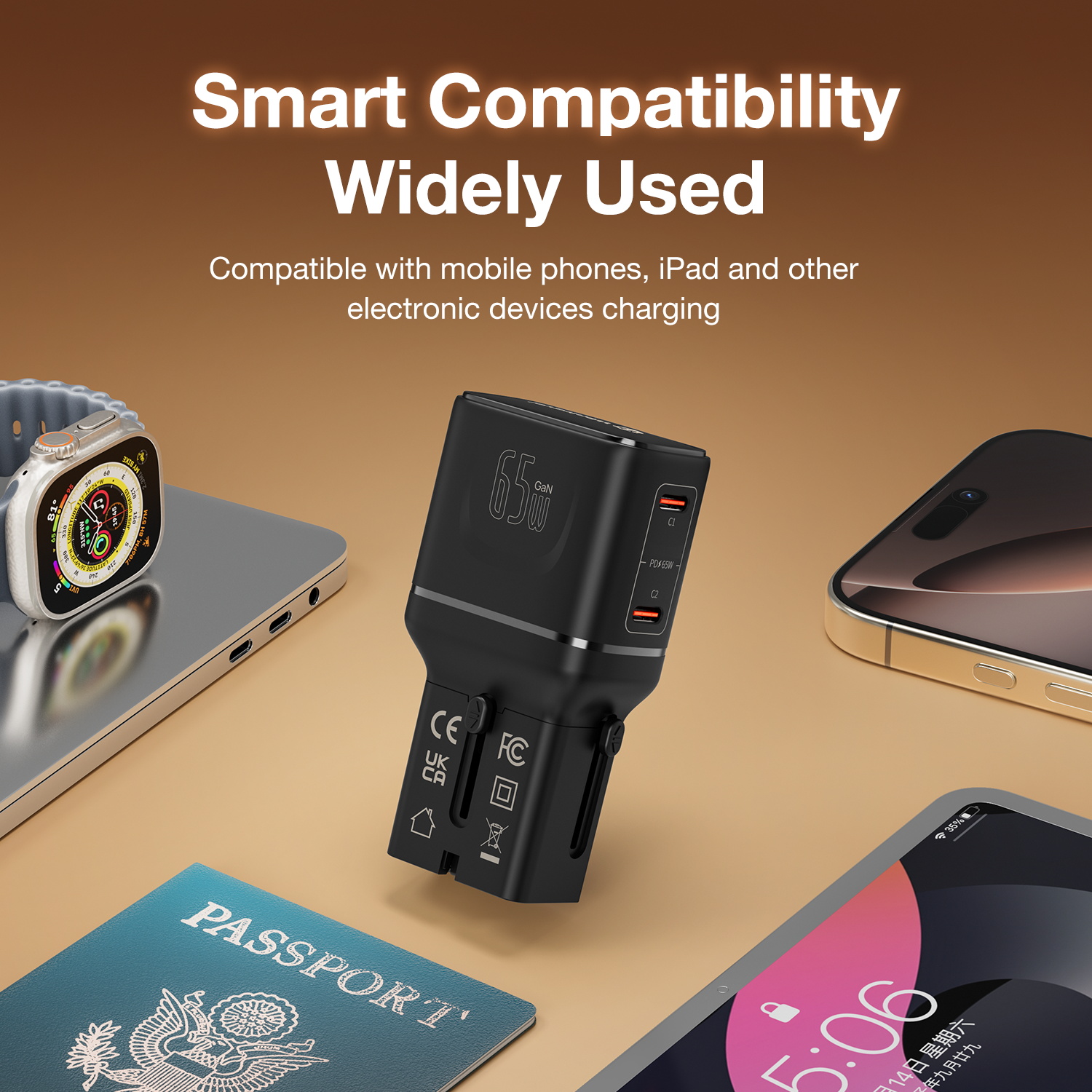 Wontravel 65W GaN Mini PD Super Fast Charger 2.0 Popular Universal Travel Adapter with Type C and USB