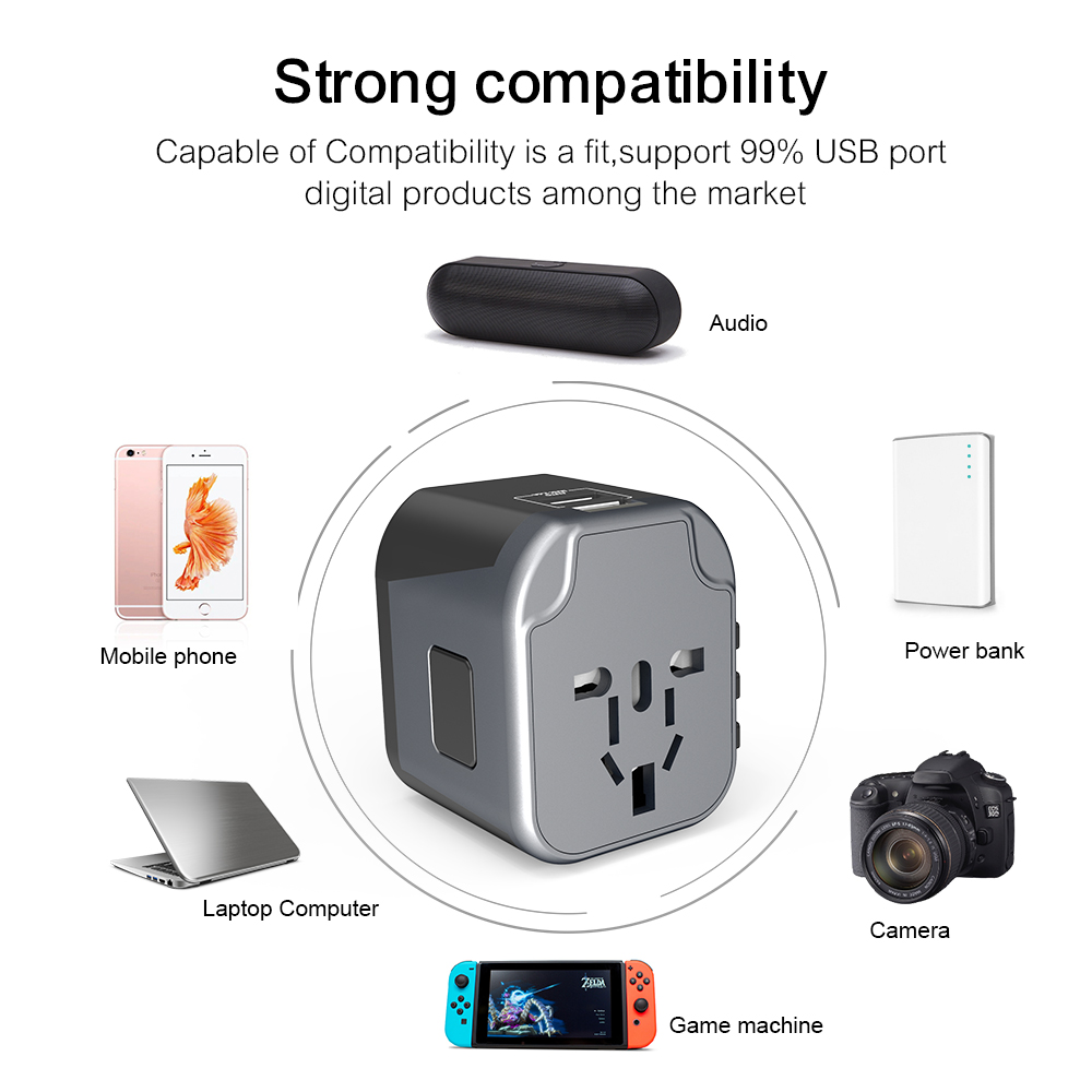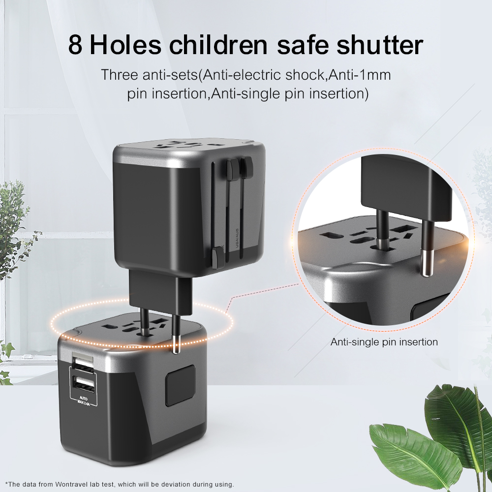 Wontravel Portable Travel Adapter 5v 2400ma 2 Usb Port Output Socket Digital Travel Charger