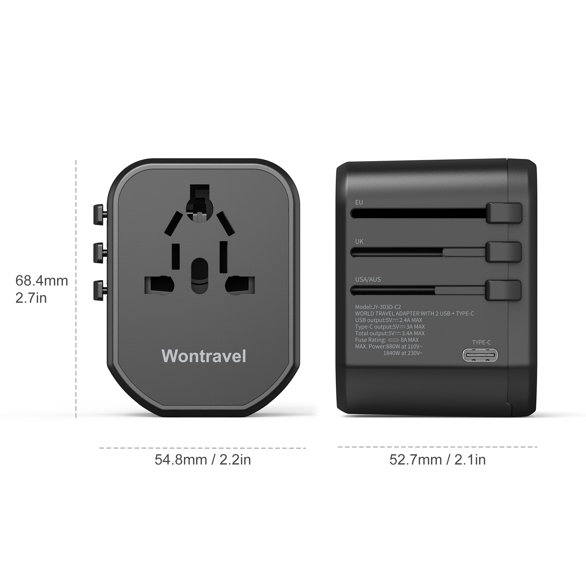 Wontravel Dual USB Type C Universal International Electrical Travel Adapter European Travel Plug Adapter 4 in 1 Conversion