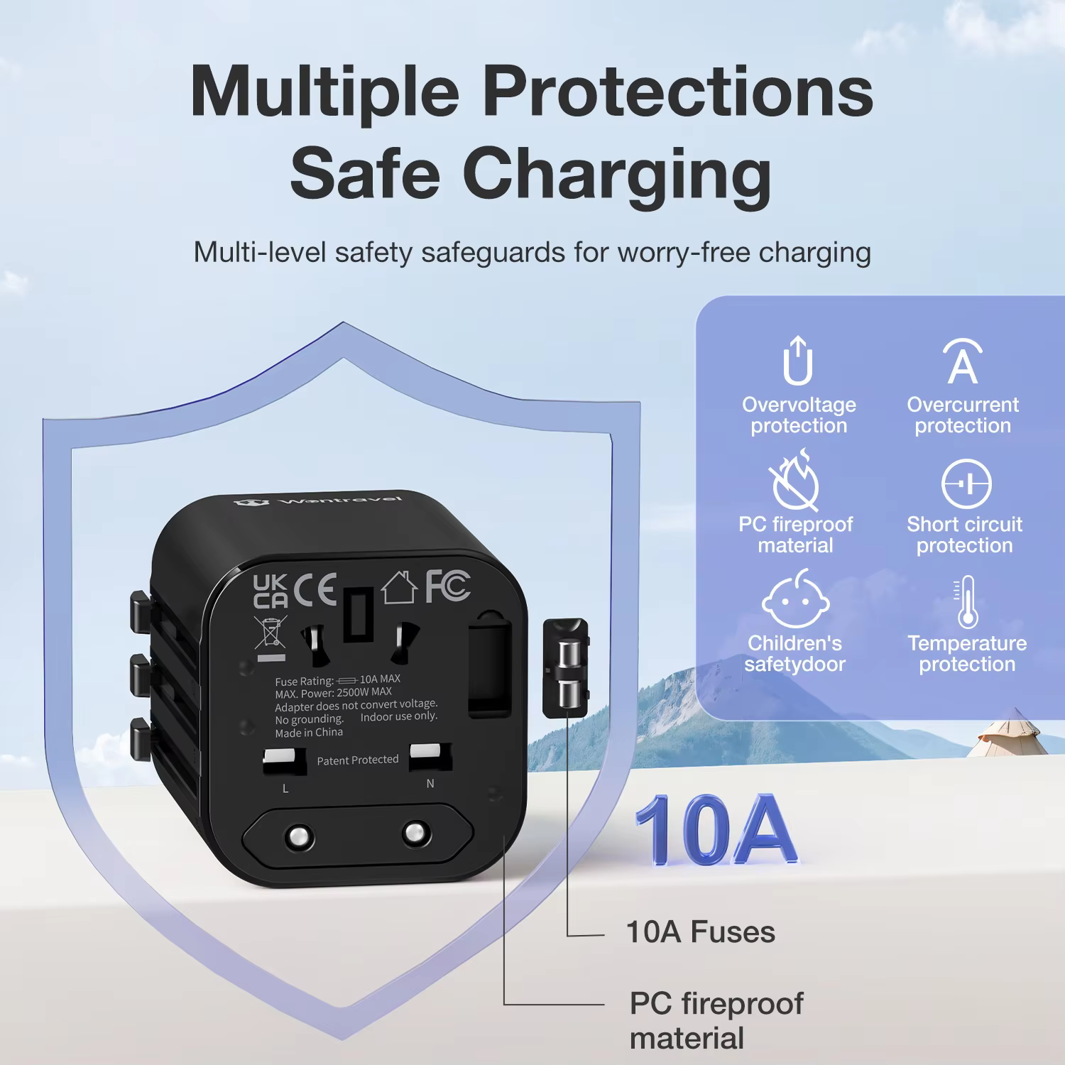 Wontravel OEM ODM Mulit Plug World Universal Travel Adapter for All Worldwide Charging Needs With Customized Logo