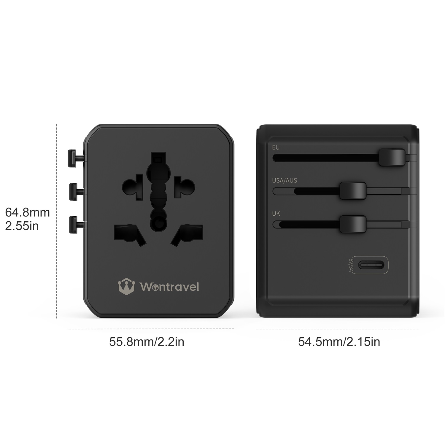 Wontravel Newest 3.4A 2 Hole Extension Socket EU US UK Uk Charger Wall Socket Usb and Type c