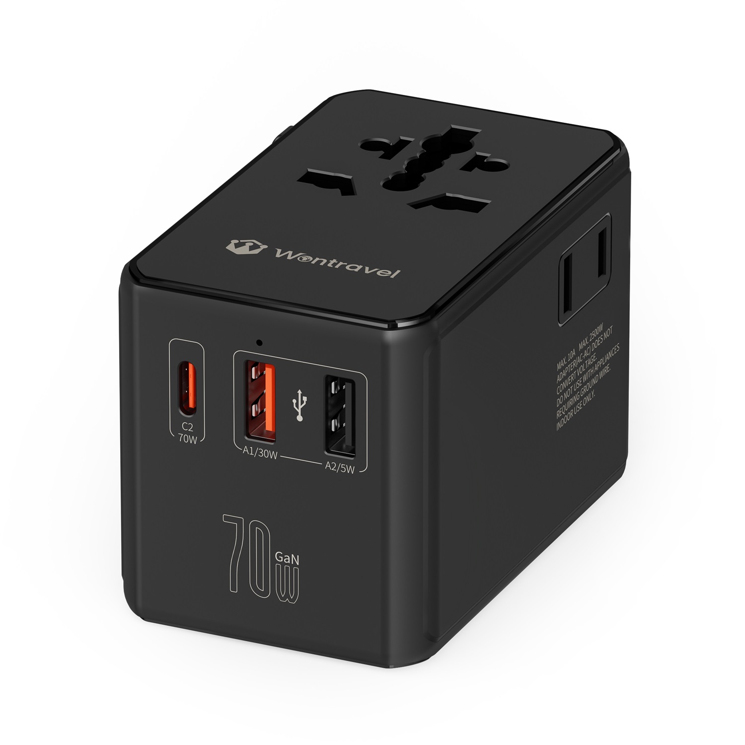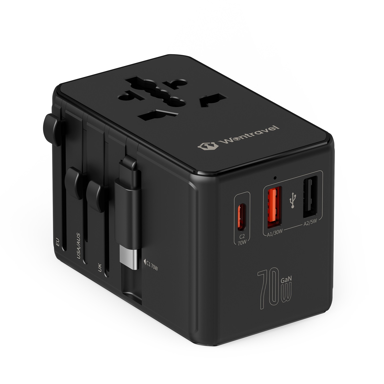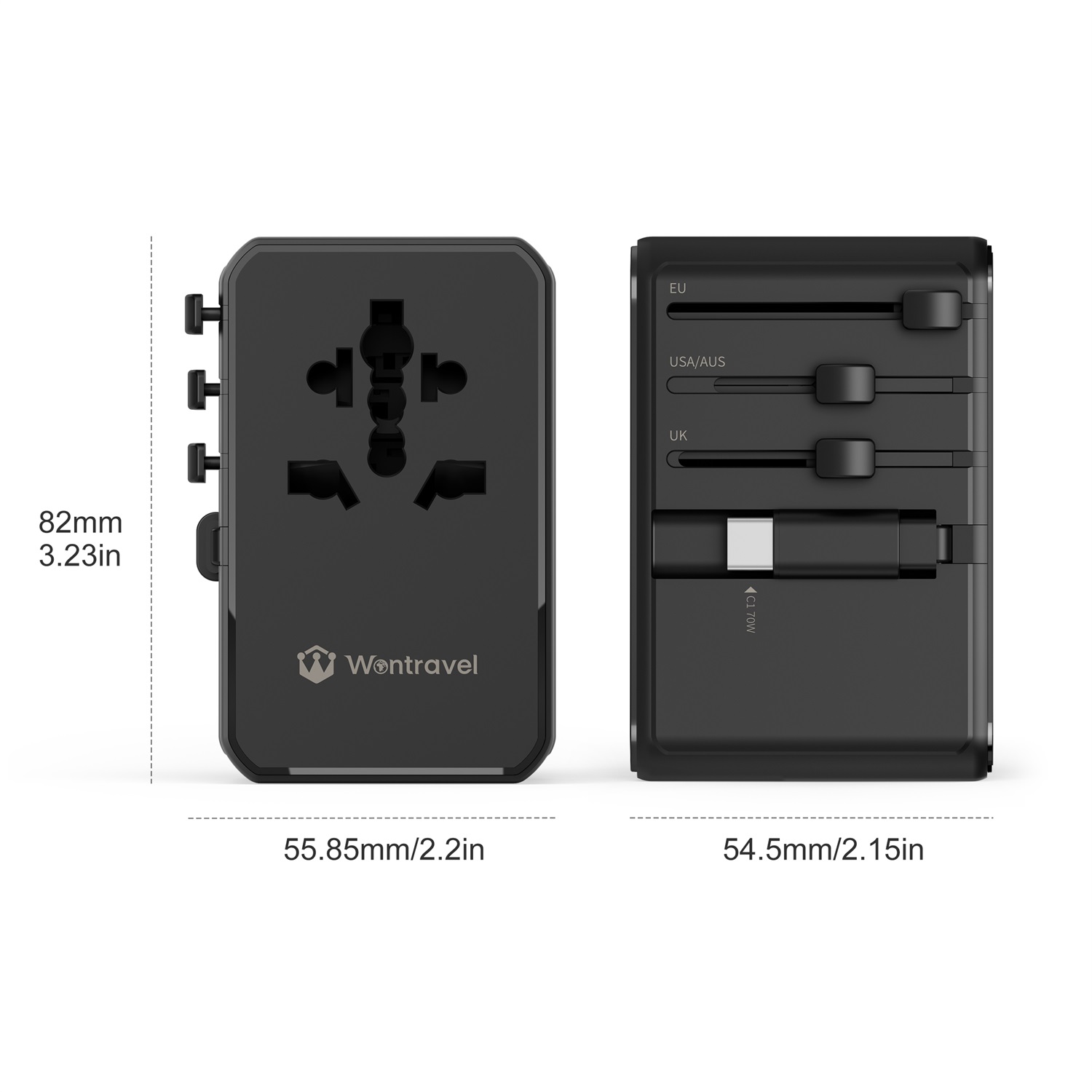 Wontravel 3AC Socket Usb C 70W Fast Charger Worldwide Universal Travel Adapters with Type C Cable